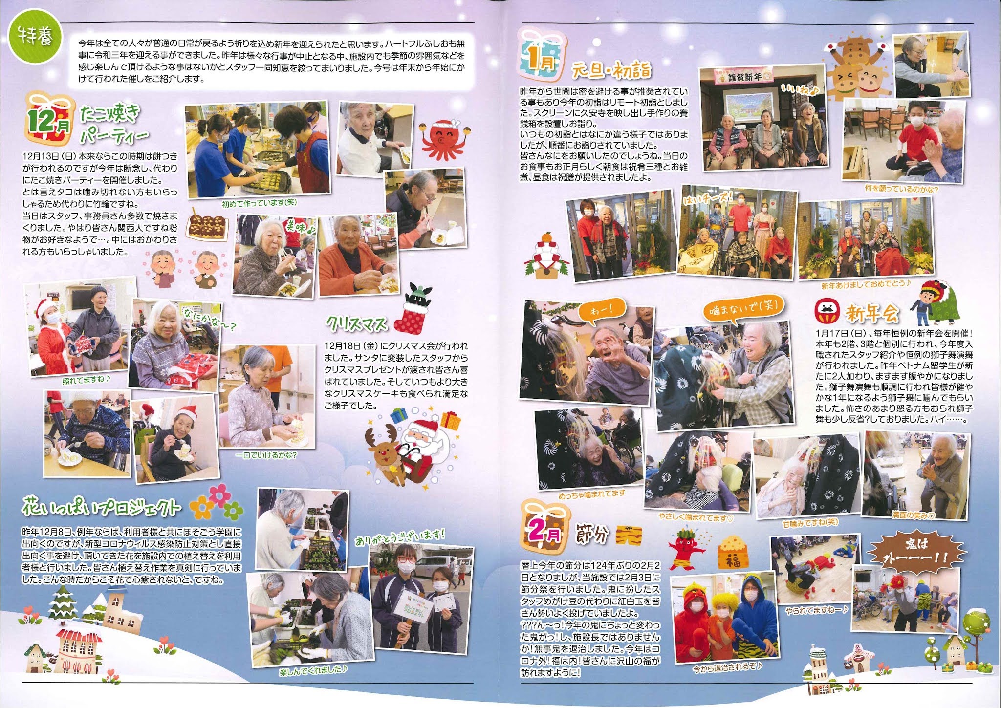 ハートフルふしおだより 発刊しました 2021年3月1日 最終更新日時 : 2021年12月17日 ハートフルふしお 創設当初より機関紙を発行しております。年に4回でありますが、総計109号となります。コロナ禍でありますが、施設内では皆様に楽しんでいただけるように楽しみを作りながら、催しを企画しております。一度、ご覧いただければと思います。