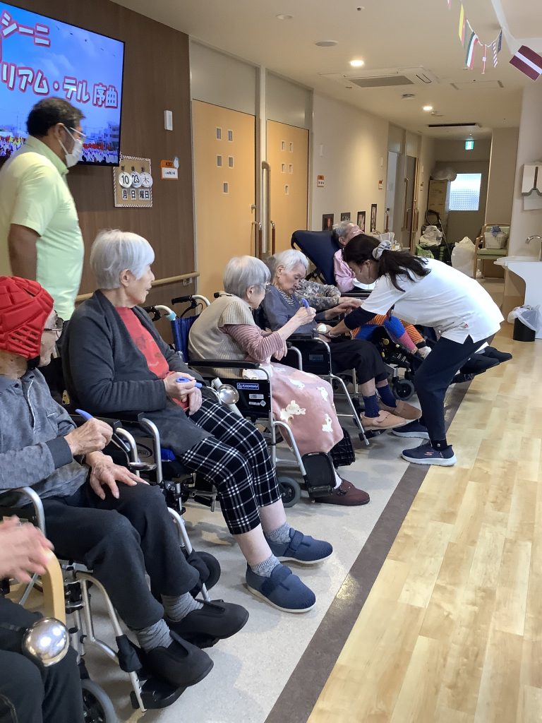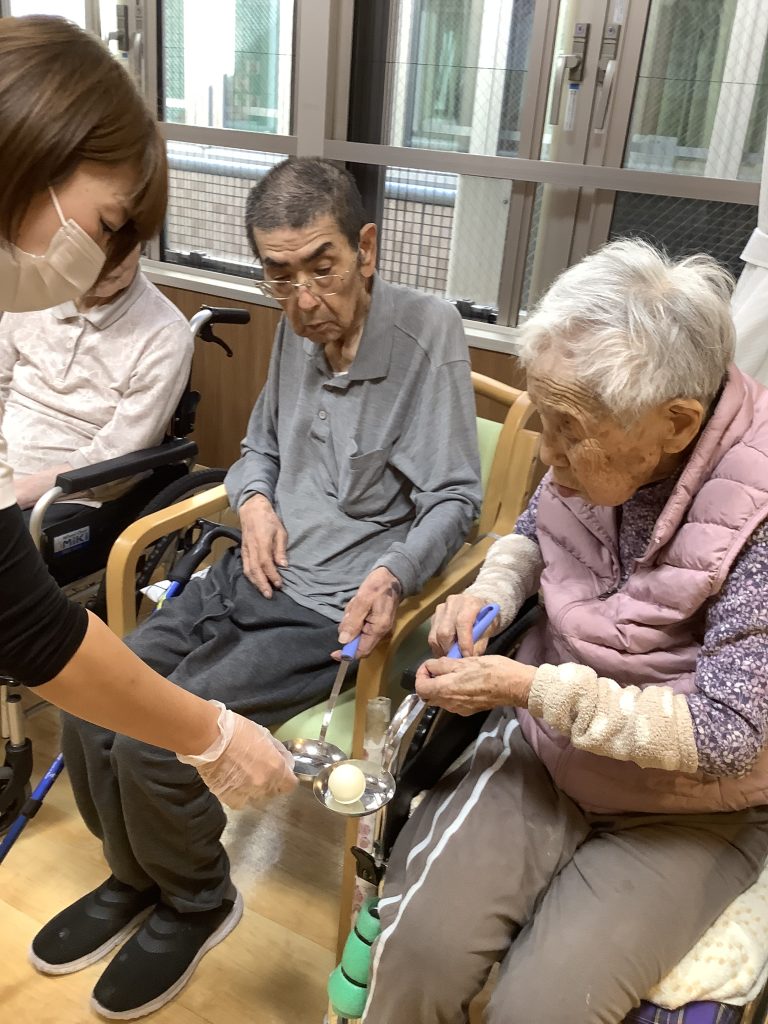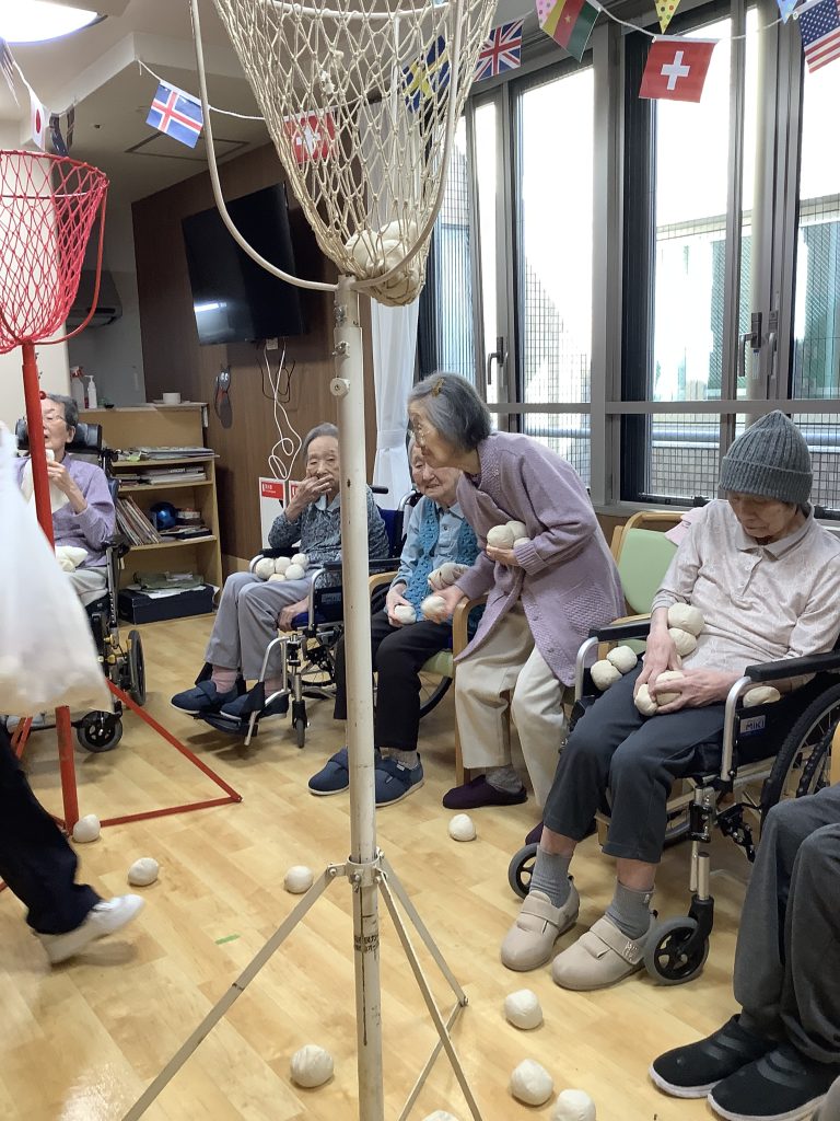 2階の入居者様が紅組、3階の入居者様が白組に分かれていただきました!!