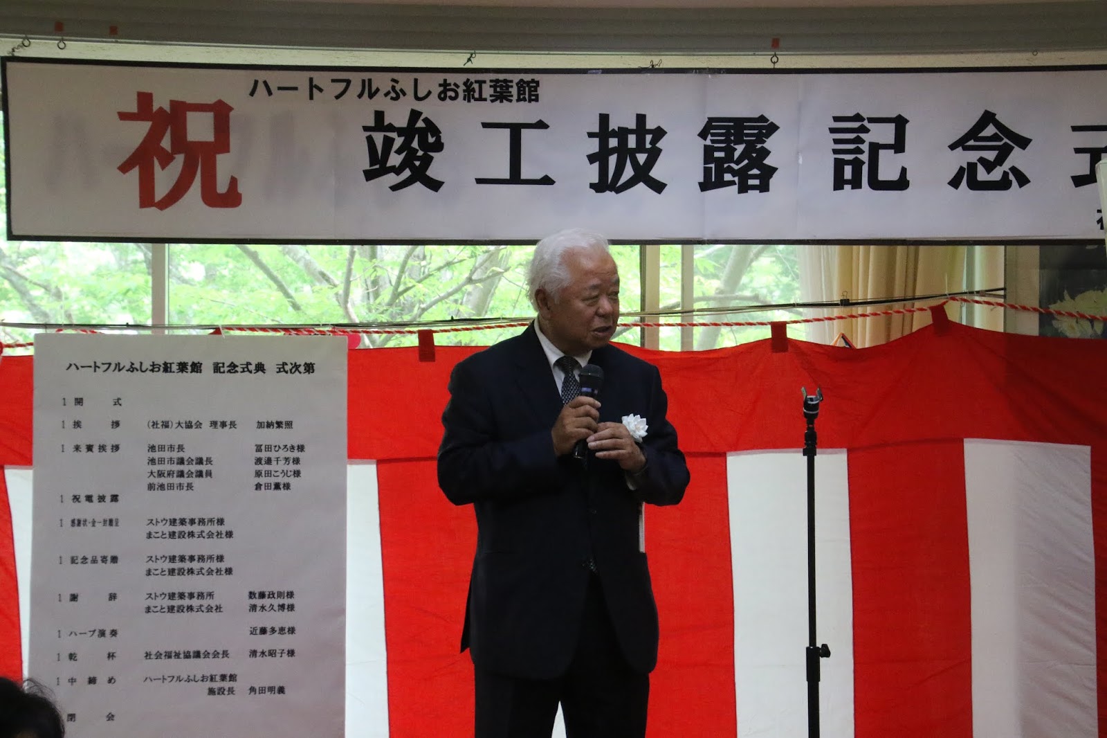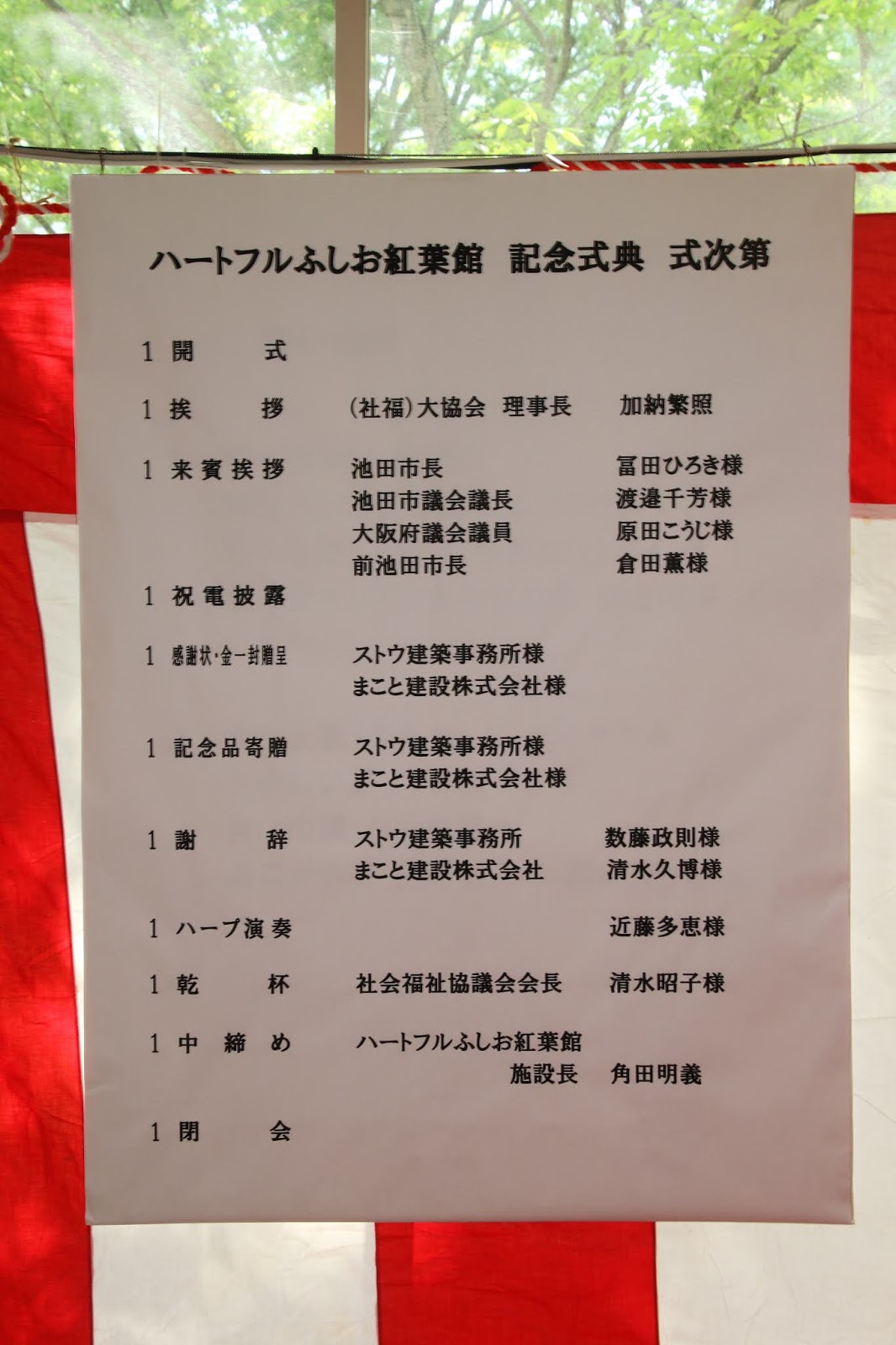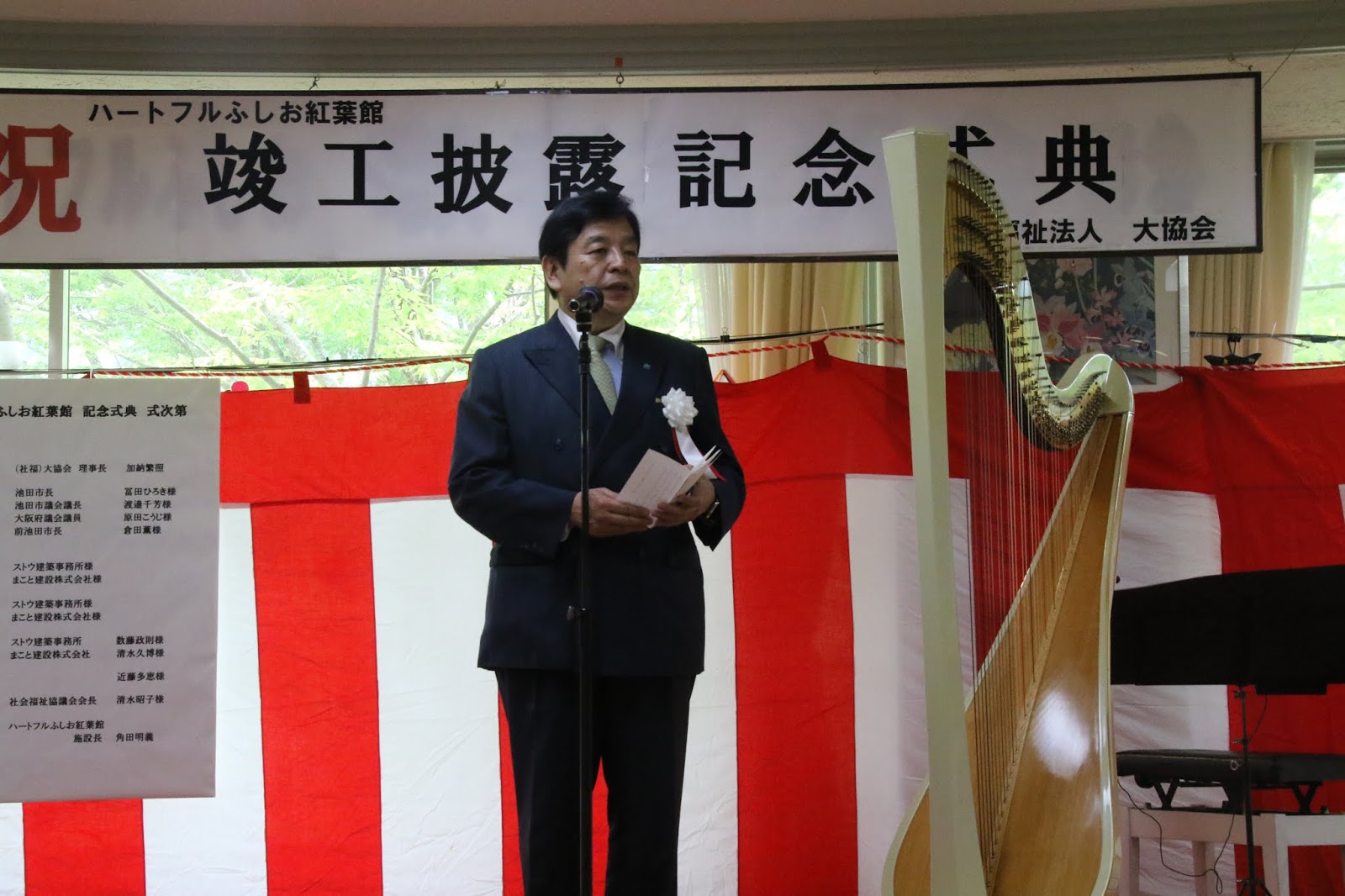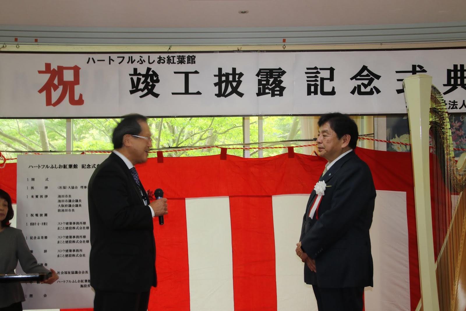 祝 ハートフルふしお紅葉館竣工式 開催いたしました 2019年6月21日 最終更新日時 : 2021年12月17日 ハートフルふしお令和元年5月26日 日曜日 11:00~13:00地域の方々をお招きし、竣工式を開催いたしました。6月~は装いも新たにハートフルふしおが生まれ変わりますので、乞うご期待ください。 (^-^)ρご来賓の方々よりたくさんの祝辞 お祝いを頂きました。 ありがとうございました。 m(_ _)m 当法人理事長 加納繁照理事長です 池田市長 冨田ひろき市長が お祝いに駆けつけてくださいました。 当施設 施設長 角田施設長です。ハープ演奏 近藤多恵様です。 食事中のBGMも演奏して頂きました。