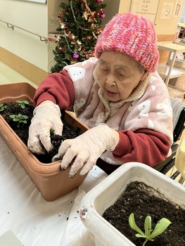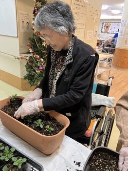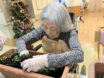 特養🌼12月🏵️花いっぱいプルジェクト💐 2025年12月19日 最終更新日時 : 2026年1月27日 ハートフルふしお12月16日細郷学園へ花の苗を頂きに行ってきました。スタッフ付き添いのもと沢山の苗を頂きました。皆さんで大切に育てていきますね。