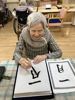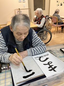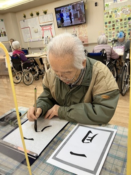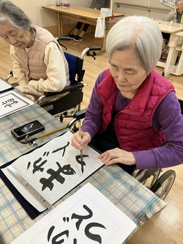 1月2日書初めを行いました。お手本を見ながら思うように書かれていました。