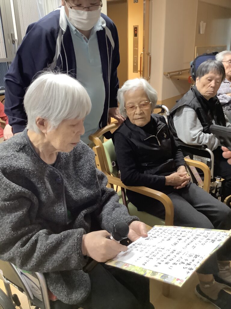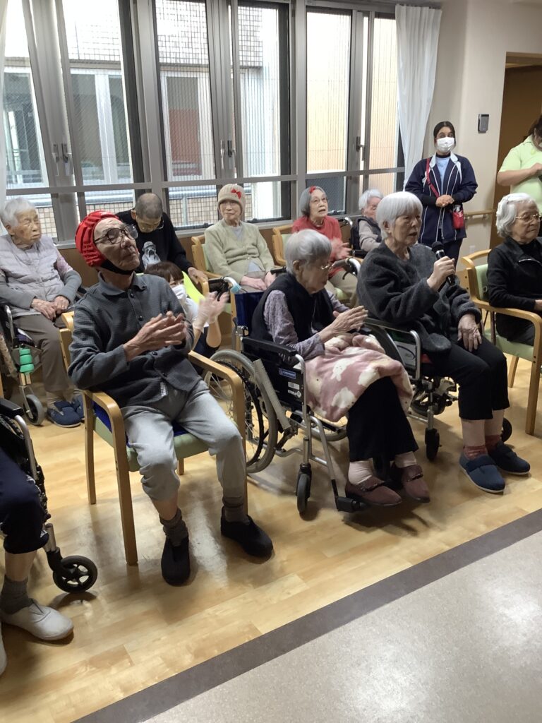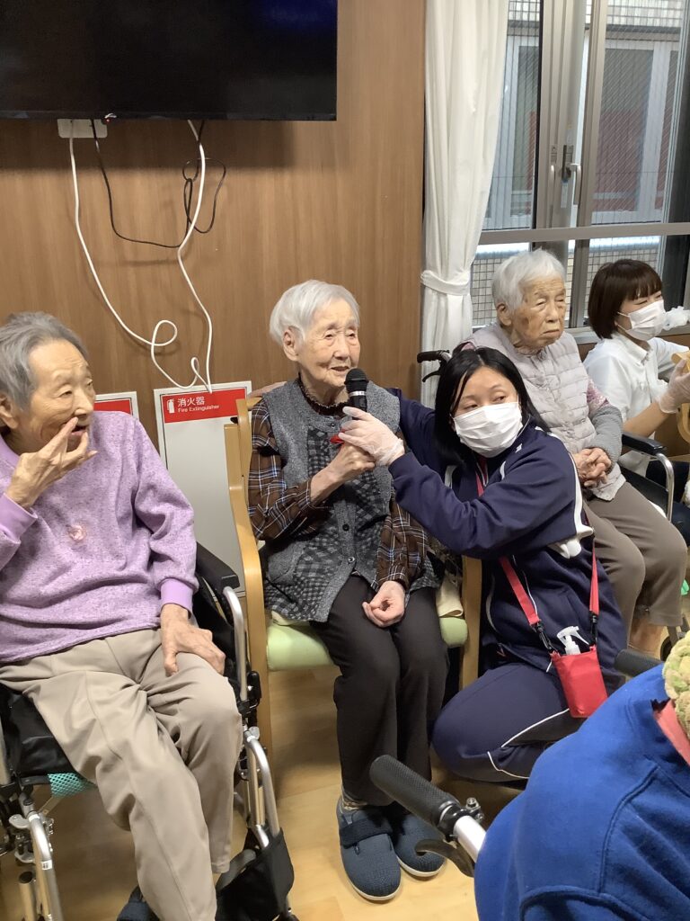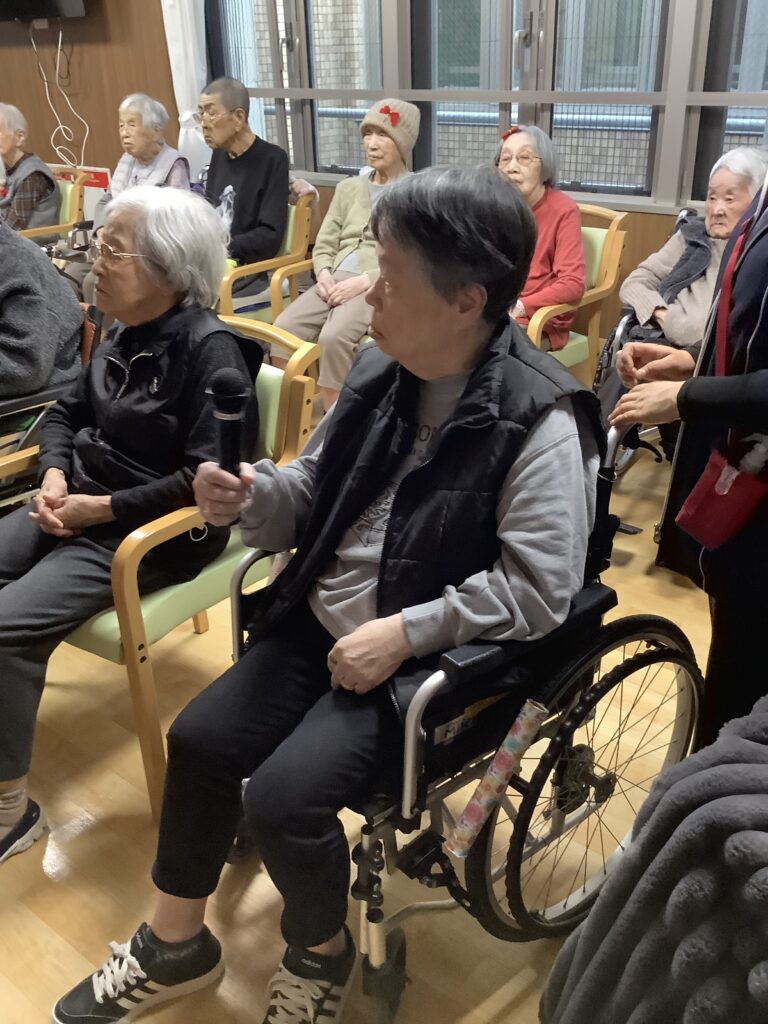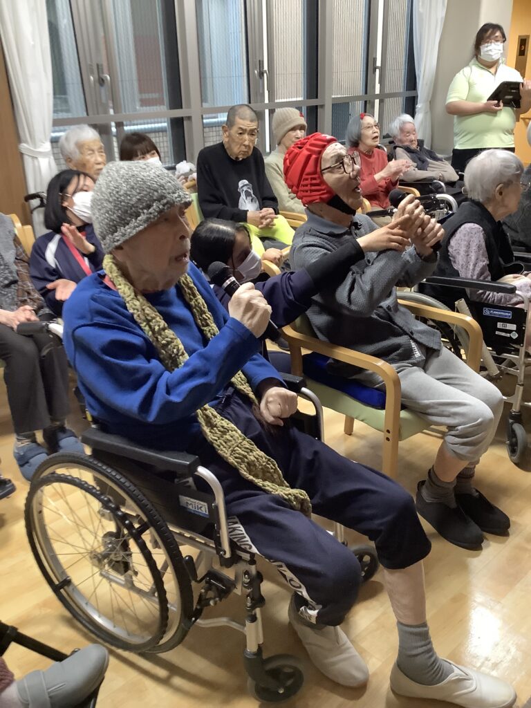 次に各階対抗で1曲ずつ歌って頂きました。3階は星影のワルツを2階は雨降りお月さんを選曲されていましたww