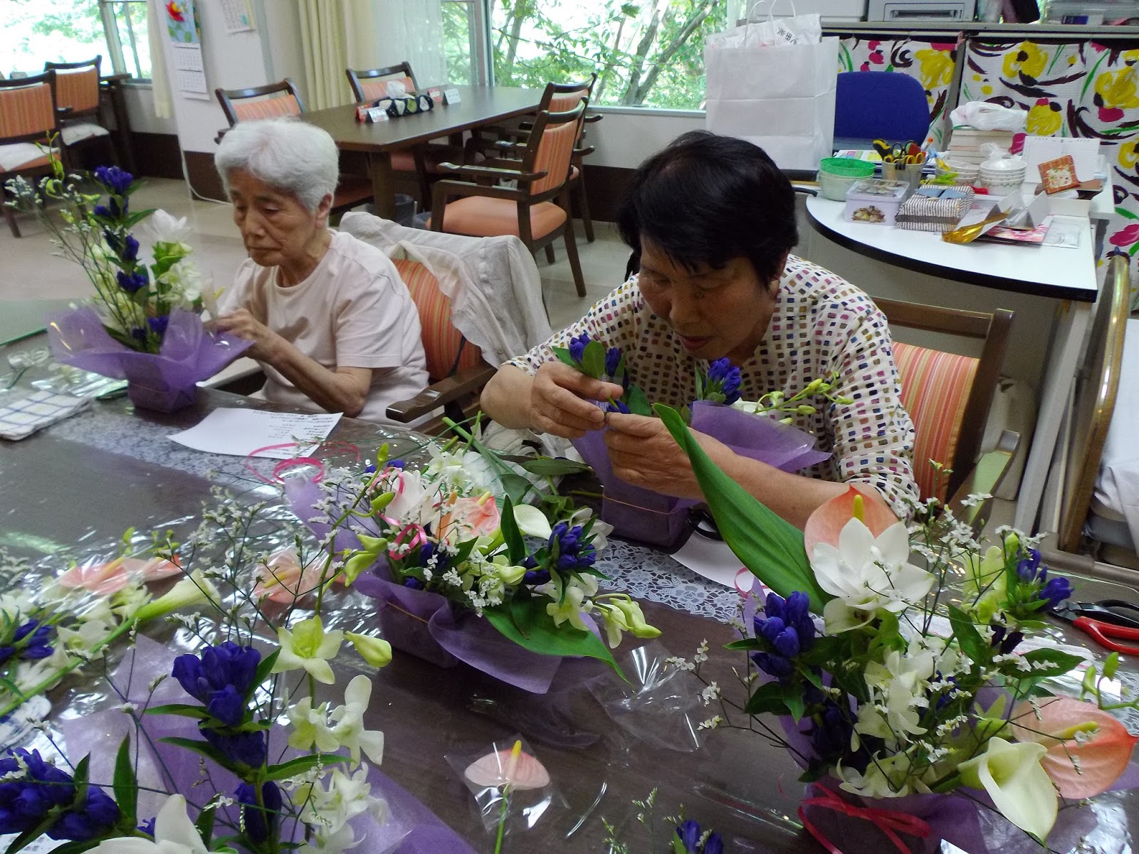 フラワーアレンジメント 好評につき、定期的に開催しています。 2017年8月22日 最終更新日時 : 2021年12月17日 ハートフルふしお季節にあった涼しげな花をご用意し、フラワーアレンジメント教室を定期的に開催しております。まずは先生からの説明皆さん真剣です!!!少し休憩? 立派なものが出来上がりました。((≧ω≦))
