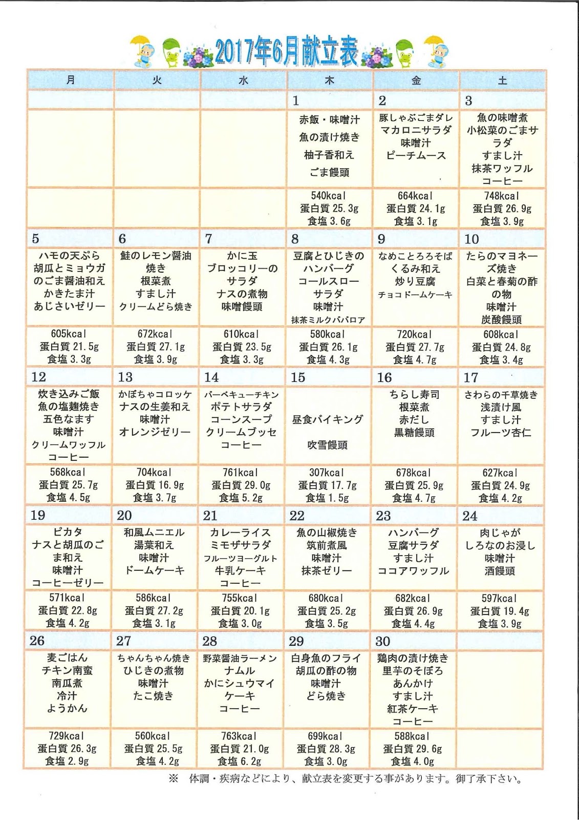 6月度 行事予定表・献立表を更新いたしました。 ~ハートフルふしお デイサービスセンター~