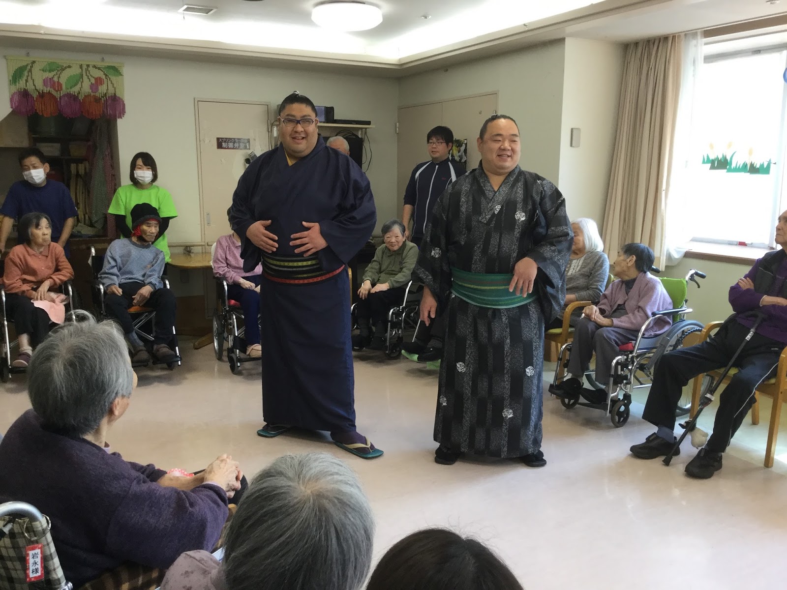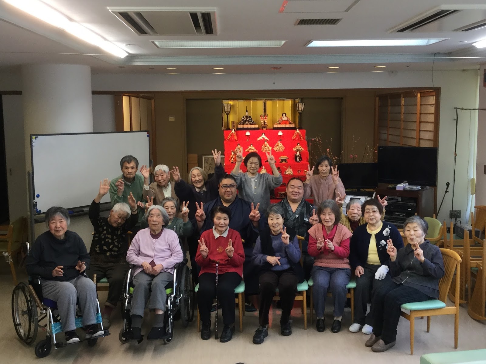 | デイサービスでは両力士を囲い、ハイチーズ!!! |