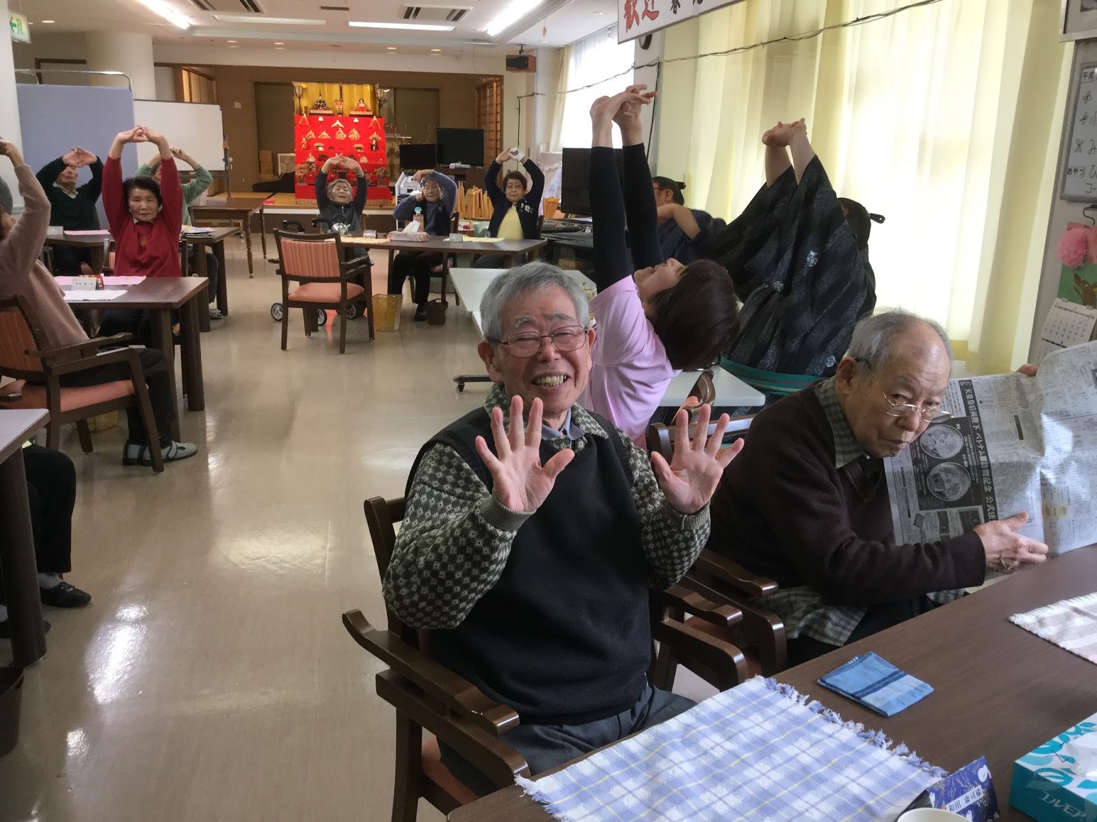 各階訪問していいただき、デイサービスでご利用者と一緒に体操をし、昼食を食べました。