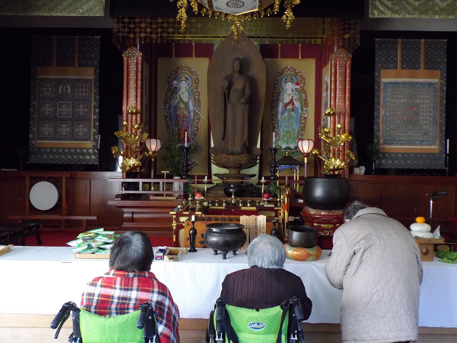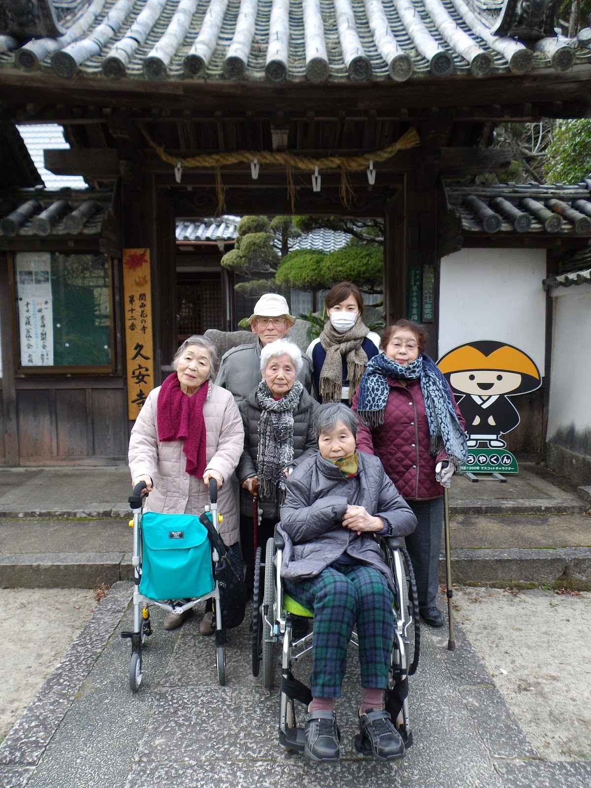 初詣 ~ハートフルふしおデイサービスセンター~ 2017年1月10日 最終更新日時 : 2021年12月17日 ハートフルふしお平成29年1月4日(水)~7日(土) ハートフルふしおデイサービスセンターでは向かいにある久安寺への初詣に行きました。久安寺境内や薬師堂へ行かれ、 皆様、新たな気持ちで新年を迎えられました。 薬師堂内にて