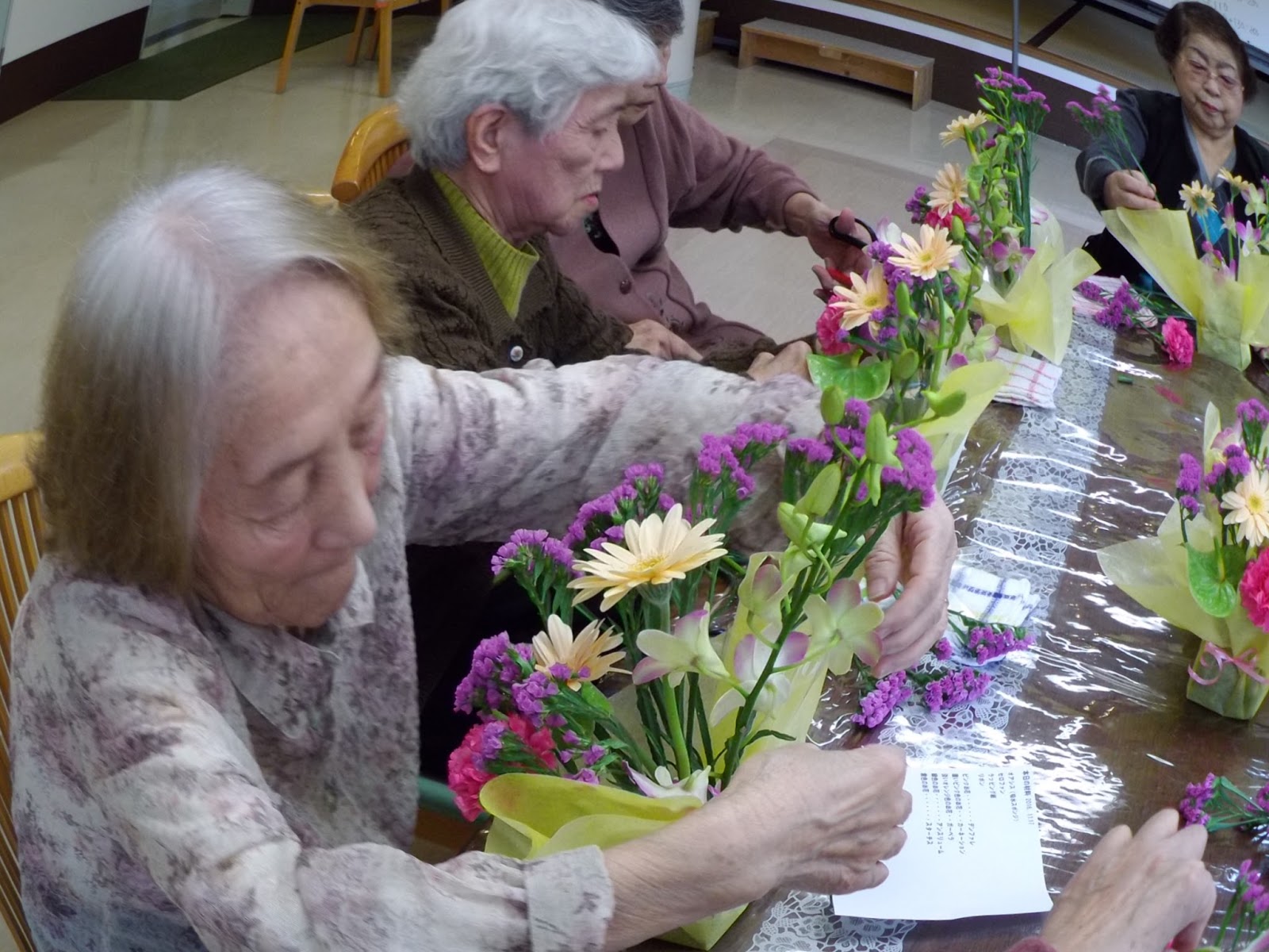 ハートフルふしおデイサービスセンター 2016年11月30日 最終更新日時 : 2021年12月17日 ハートフルふしお秋も深まり、冬に近づいていますが、皆様いかがお過ごしですか?ハートフルふしおデイサービスセンターでも秋にちなんだ催しを開催しております。写真を掲載いたしますので、ご覧ください。池田中学生による職場体験の一コマ11月中旬よりお誘いしております久安寺紅葉見物ツアー見事な色づきです。国宝”楼門”を望むご利用者様フラワーアレンジメントのプログラムです。 いつもお世話になっている安黒様 このほど導入したWIIUで一緒にカラオケを楽しみました。黄色と赤色のコラボレーションは目を引くばかりでした。 毎月1回のバイキング皆様にご好評いただいています。