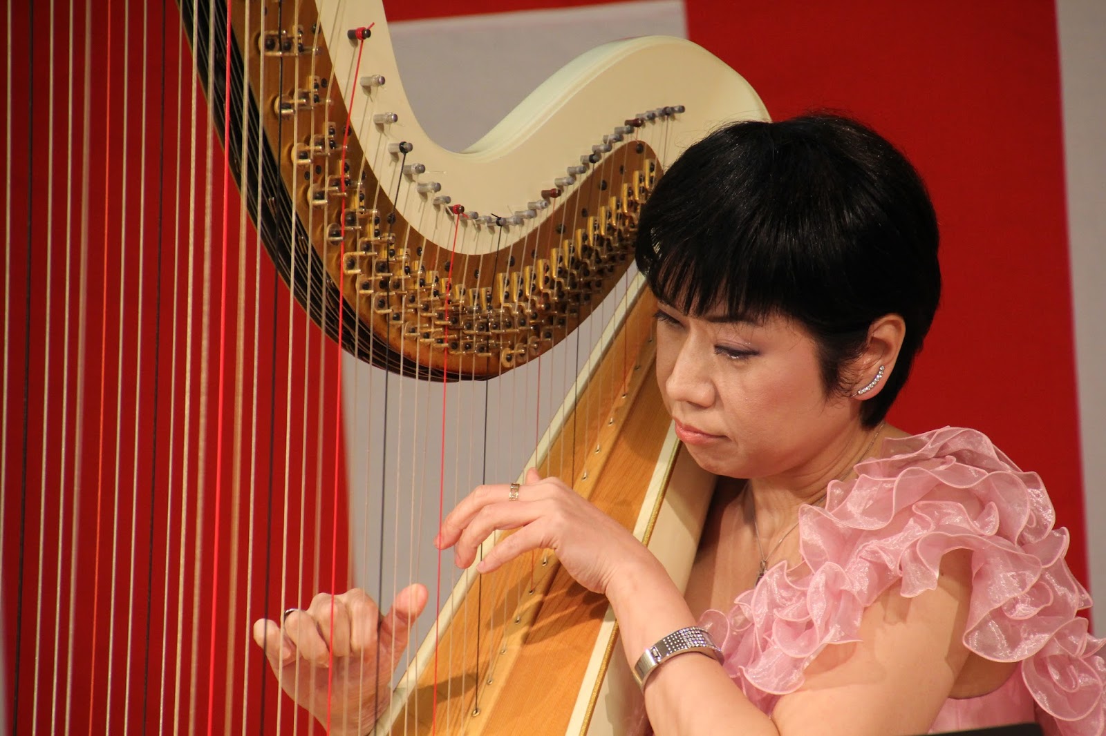 ハープ演奏 近藤様です。 大きなハープには皆様圧巻。音色は心地のいいものでした。 |