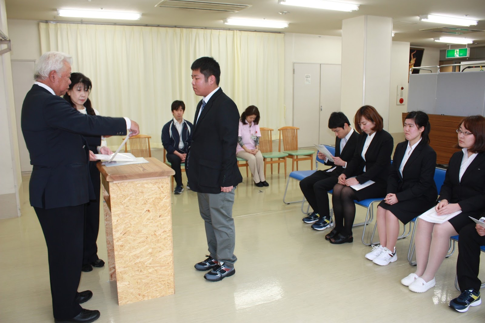 平成28年度 入社式 行いました。 2016年4月1日 最終更新日時 : 2021年12月17日 ハートフルふしお 平成28年4月1日 金曜日 9:00 当法人 に 本日から 6名 の新入職員が入社されました。 希望に満ち溢れた新卒者の皆さまをご紹介いたします。 今後のご活躍に期待いたします。 今年度も当法人職員一同装いも新たに頑張りたいと思いますので、 よろしくお願いします。 m(_ _)m 職員一同 施設長と共に ハートフルふしお前にて