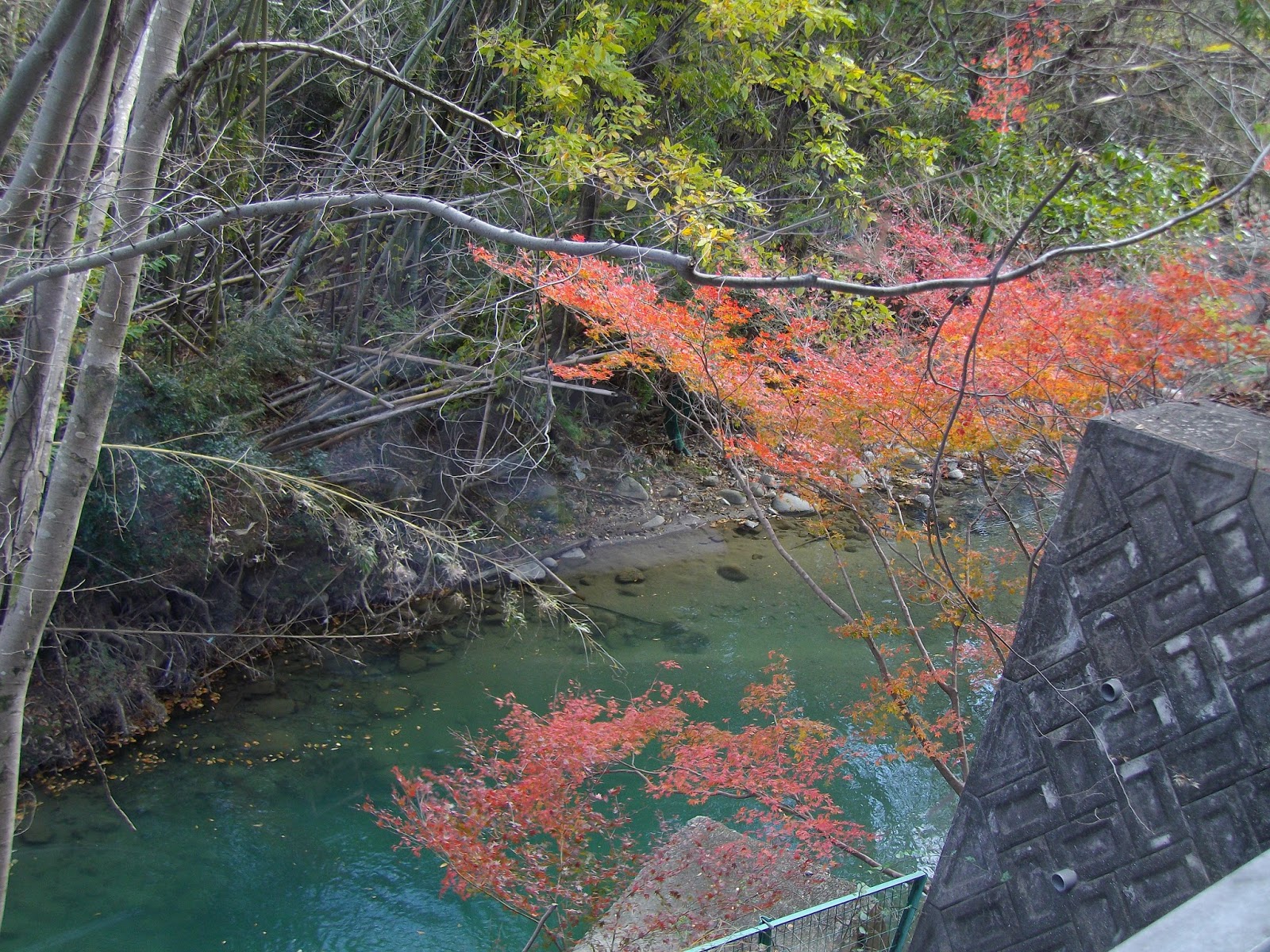余野川に紅葉が映えます。