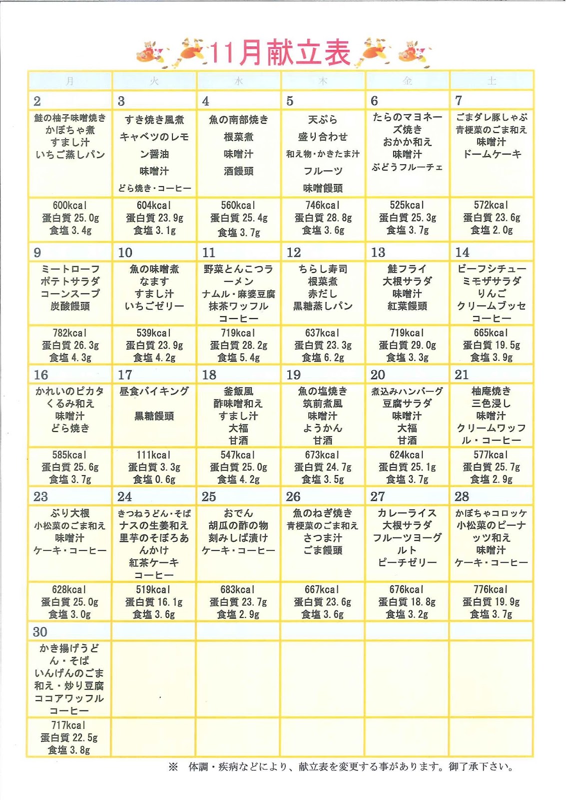 11月度 行事予定表を更新いたしました。~ハートフルふしお デイサービスセンター~