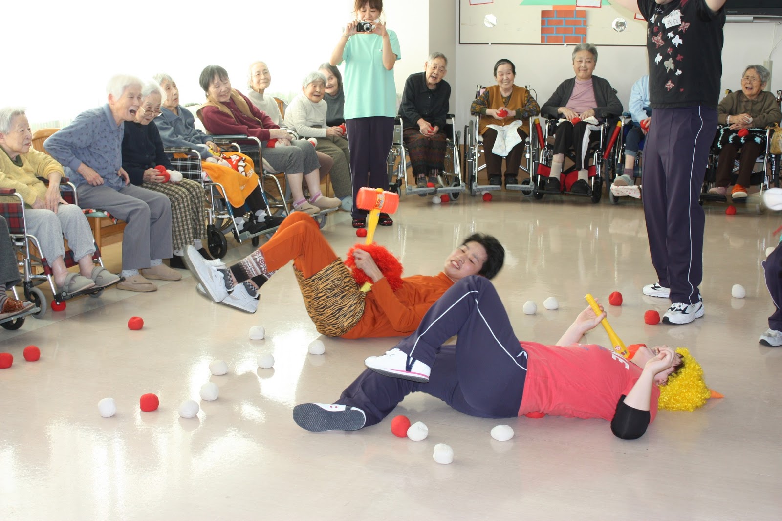 鬼に向かって一斉放射・・・豆ならぬ赤玉白玉で鬼攻撃
