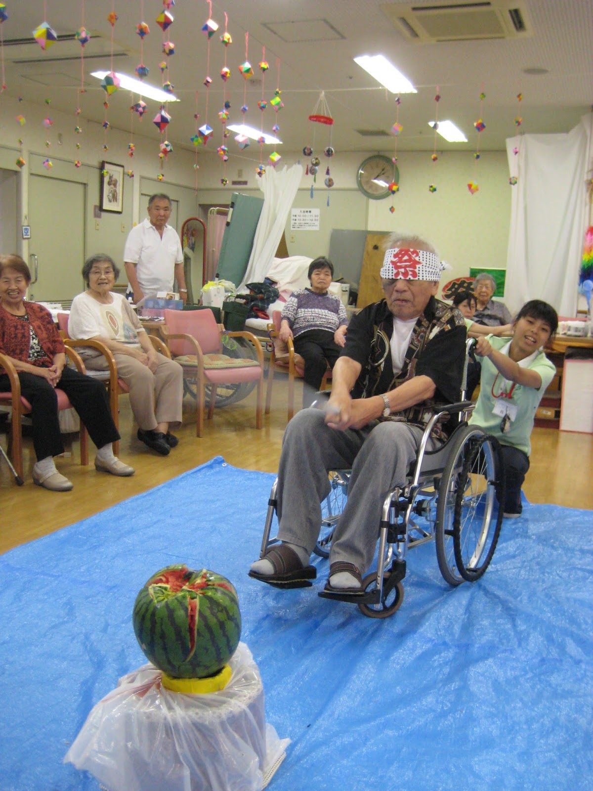 ハートフルでは、毎年天神祭の日にスイカ割りを実施しています。今年も上手く割れたのでしょうか?!