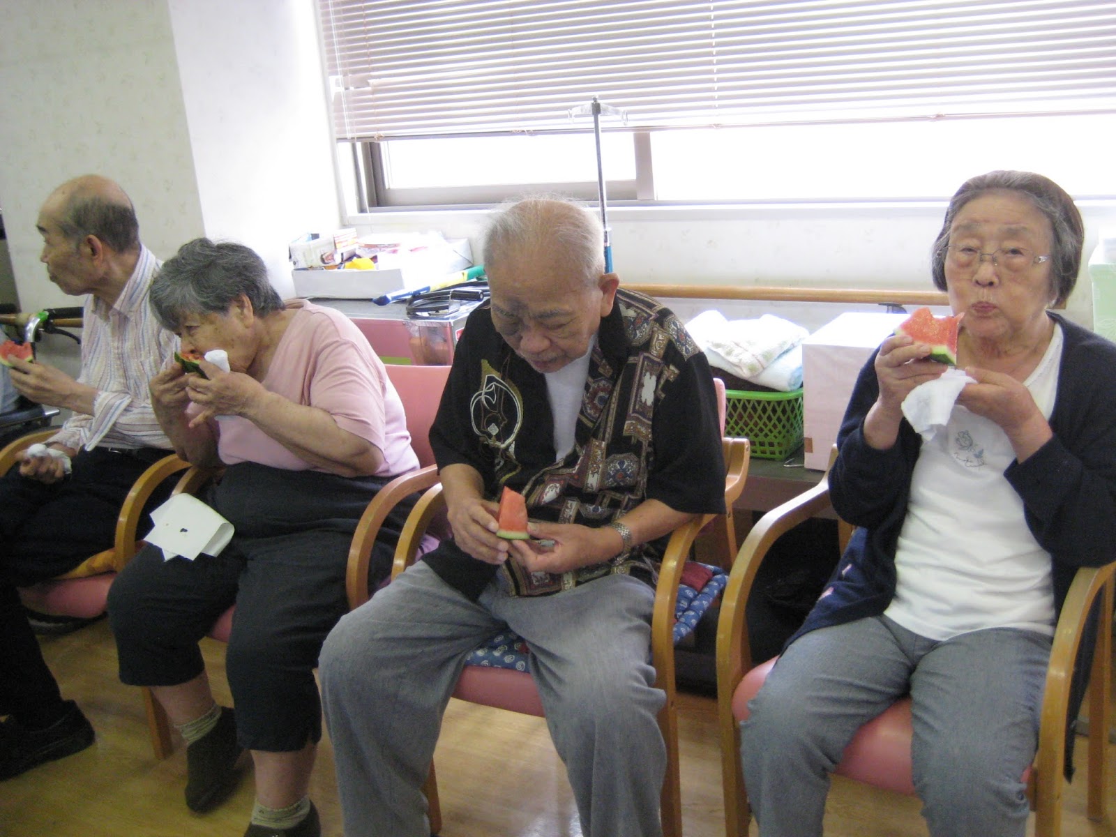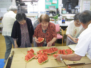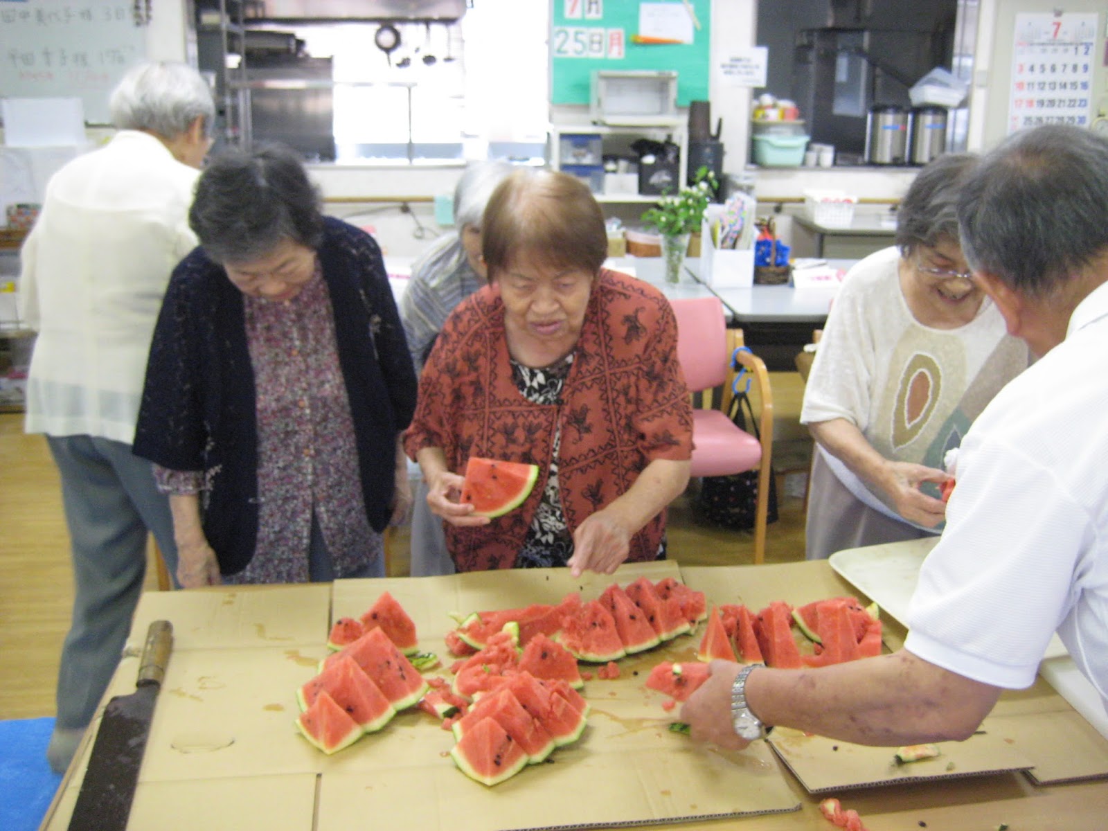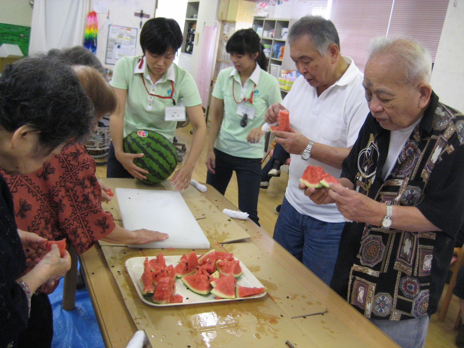 美味しい美味しいと、そばを離れない利用者さんもいれば普段は大人しい利用者さんもご自分から歩いてスイカを取りに行こうとしたりΣ(・∀・;)