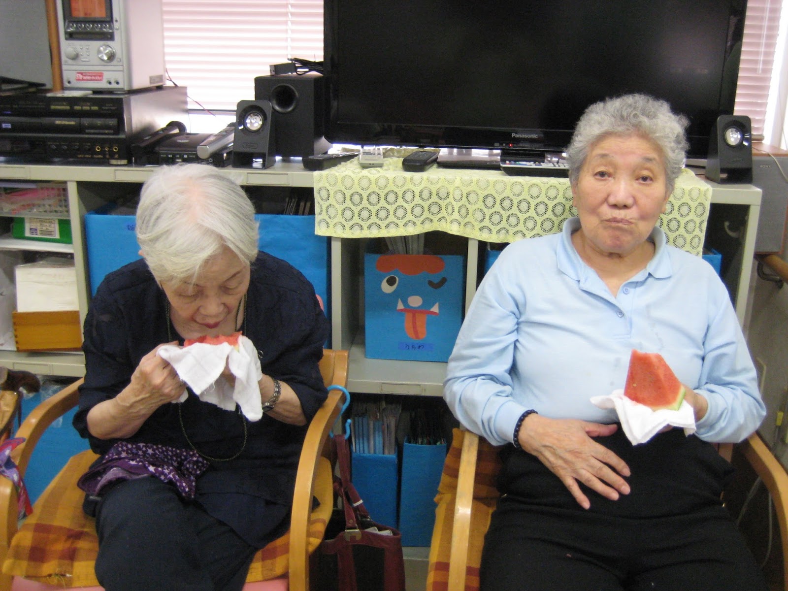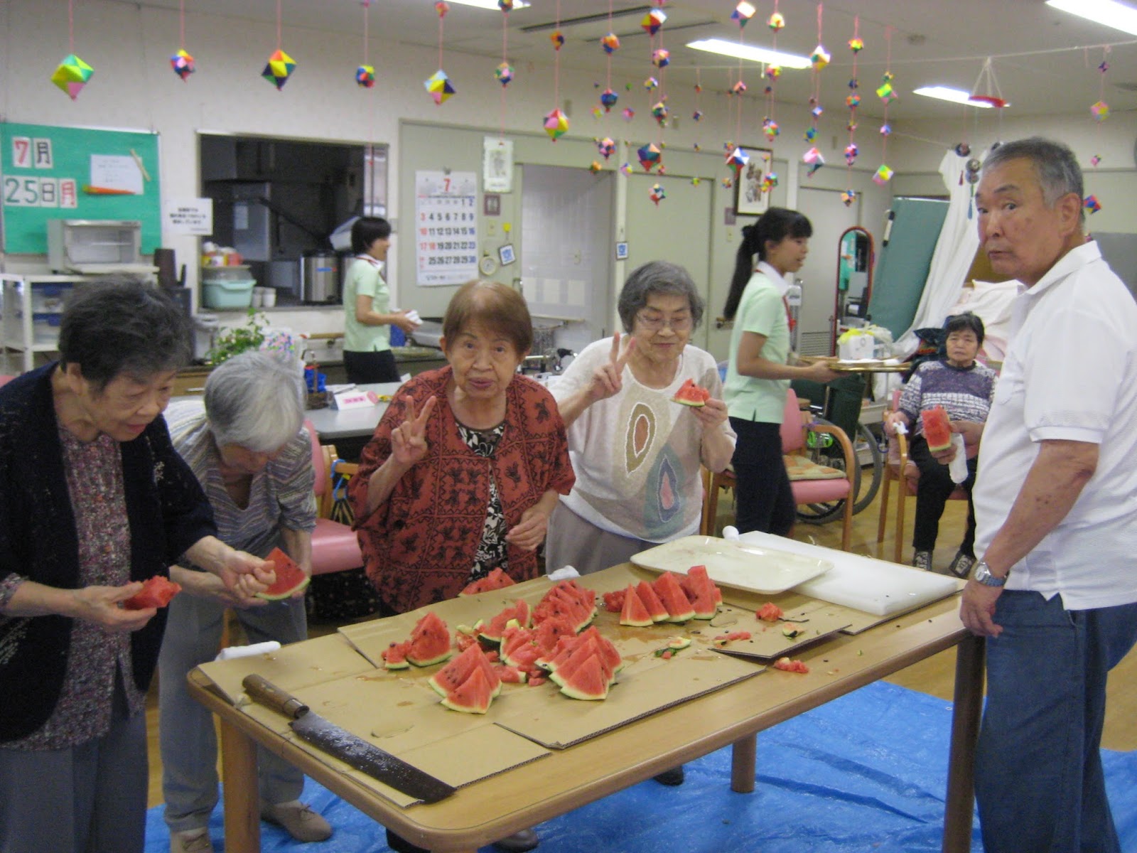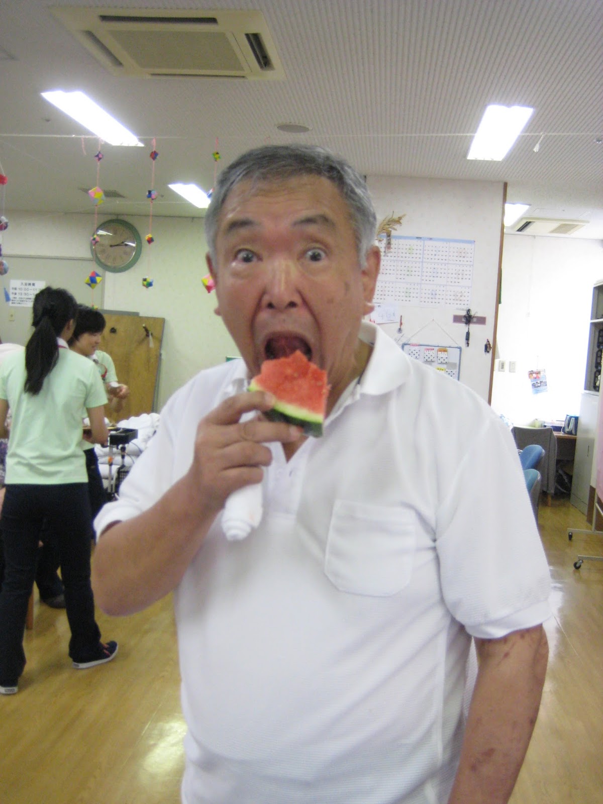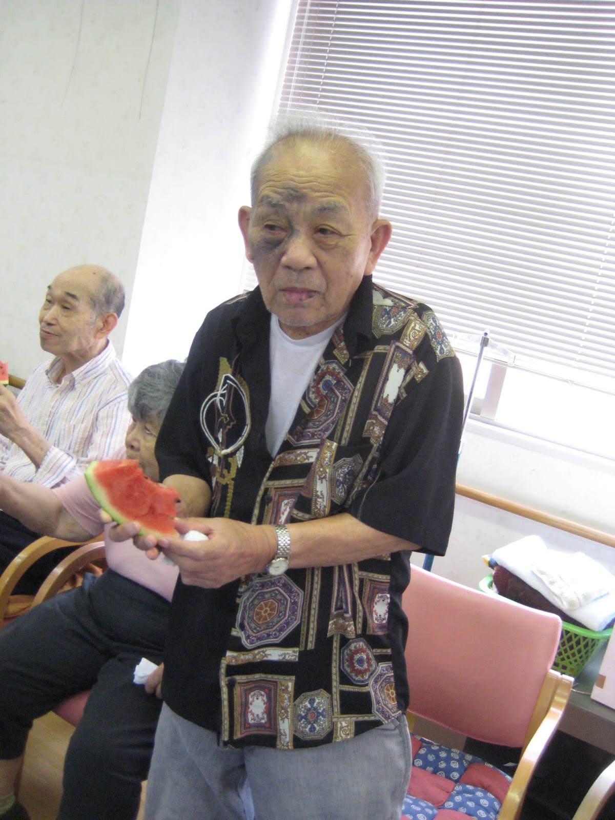 美味しい美味しいと、そばを離れない利用者さんもいれば普段は大人しい利用者さんもご自分から歩いてスイカを取りに行こうとしたりΣ(・∀・;)