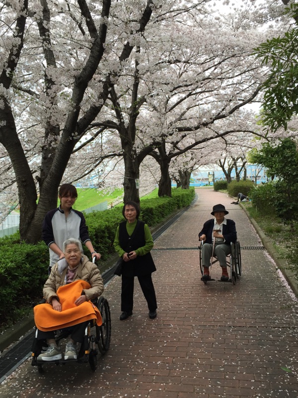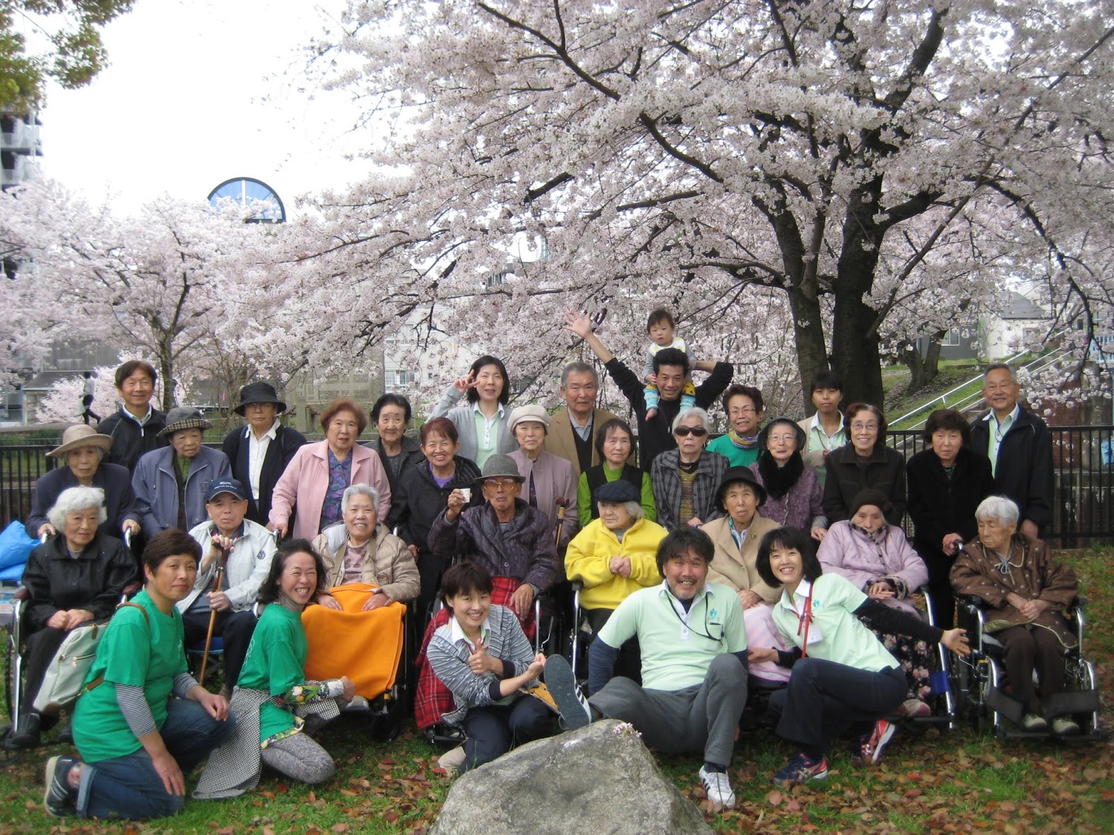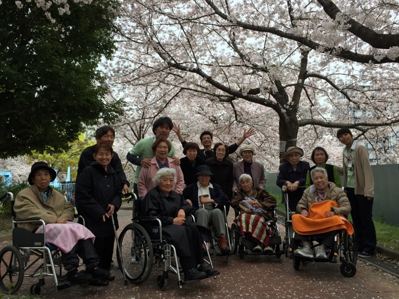 外出機会の少ないご利用者様は、皆さん素敵な笑顔でお花見を楽しんで下さり、スタッフも大満足な一日でした。これからもたくさんの楽しい時間を過ごして頂くような行事を企画しご紹介していきたいと思いますので、お楽しみに!!