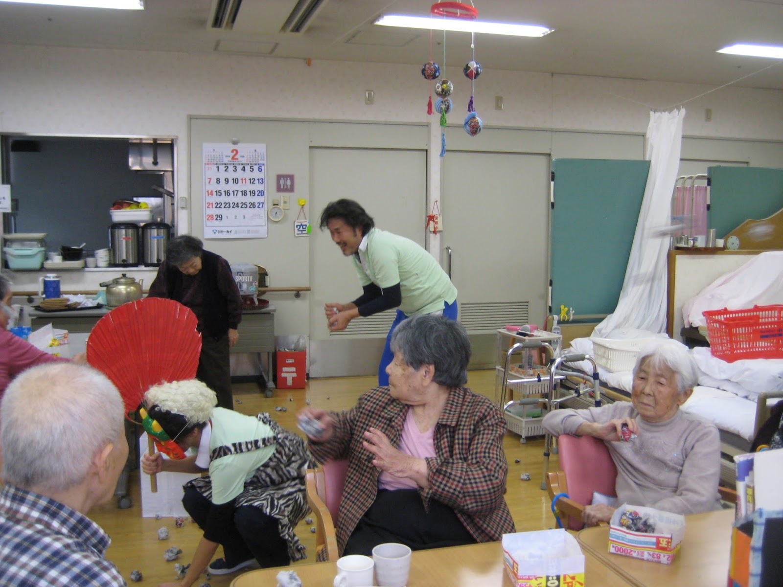 ハートフルかのうデイサービスセンターでは、季節ごとの行事をウキウキ気分で楽しんで頂くために、年中行事の一つの節分に『恵方巻き』と『豆まき』を行い、少しだけ春を感じていただきました