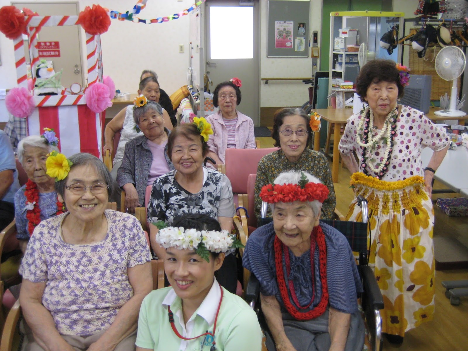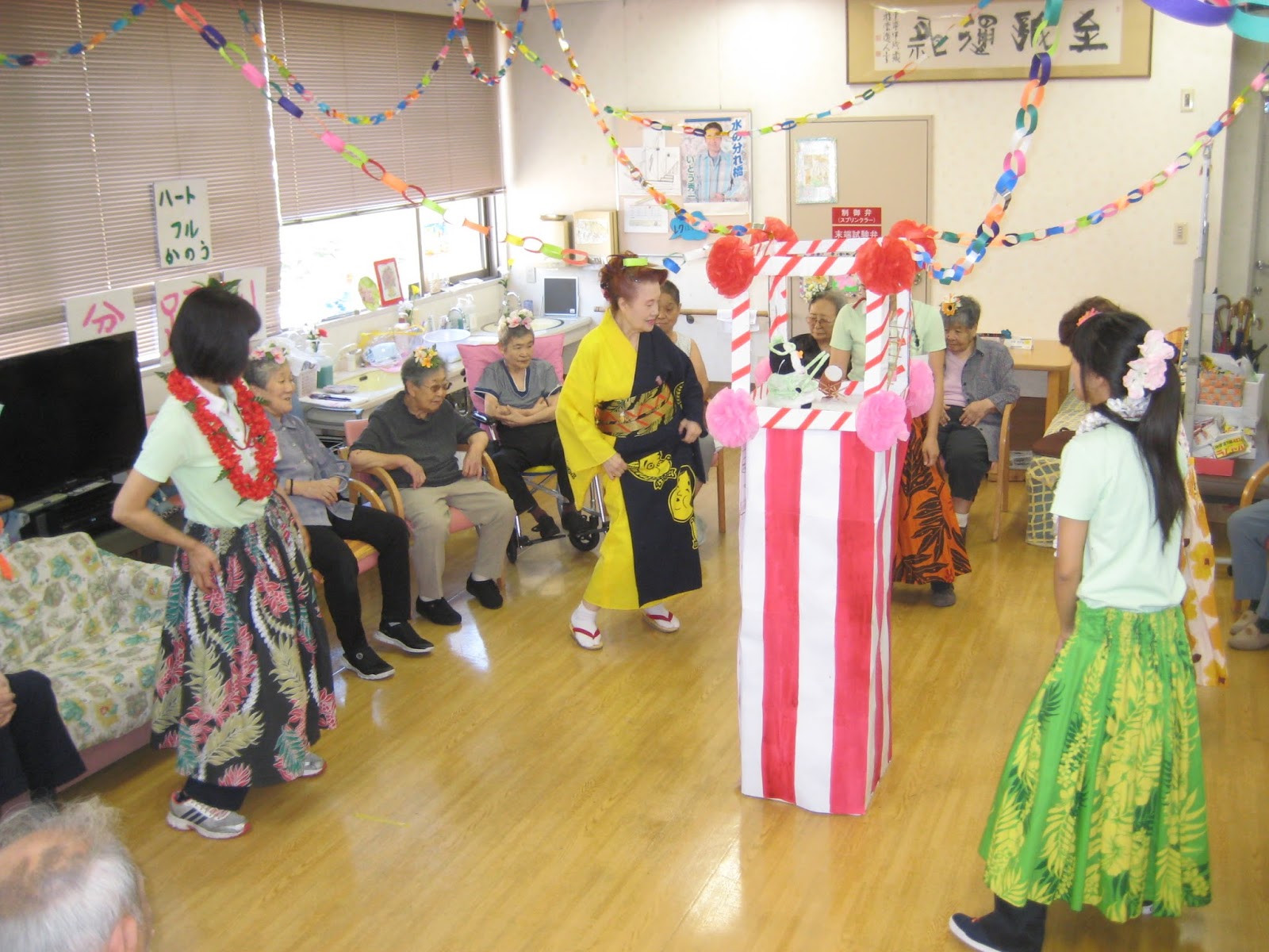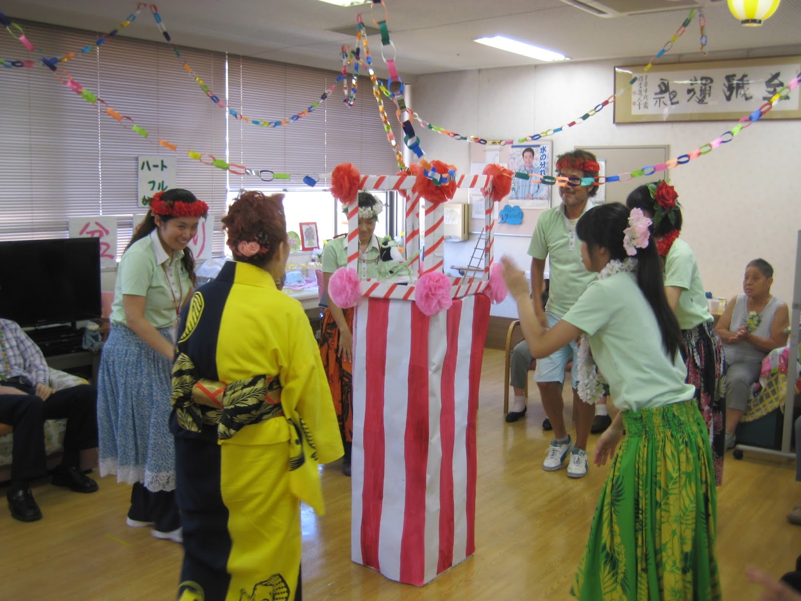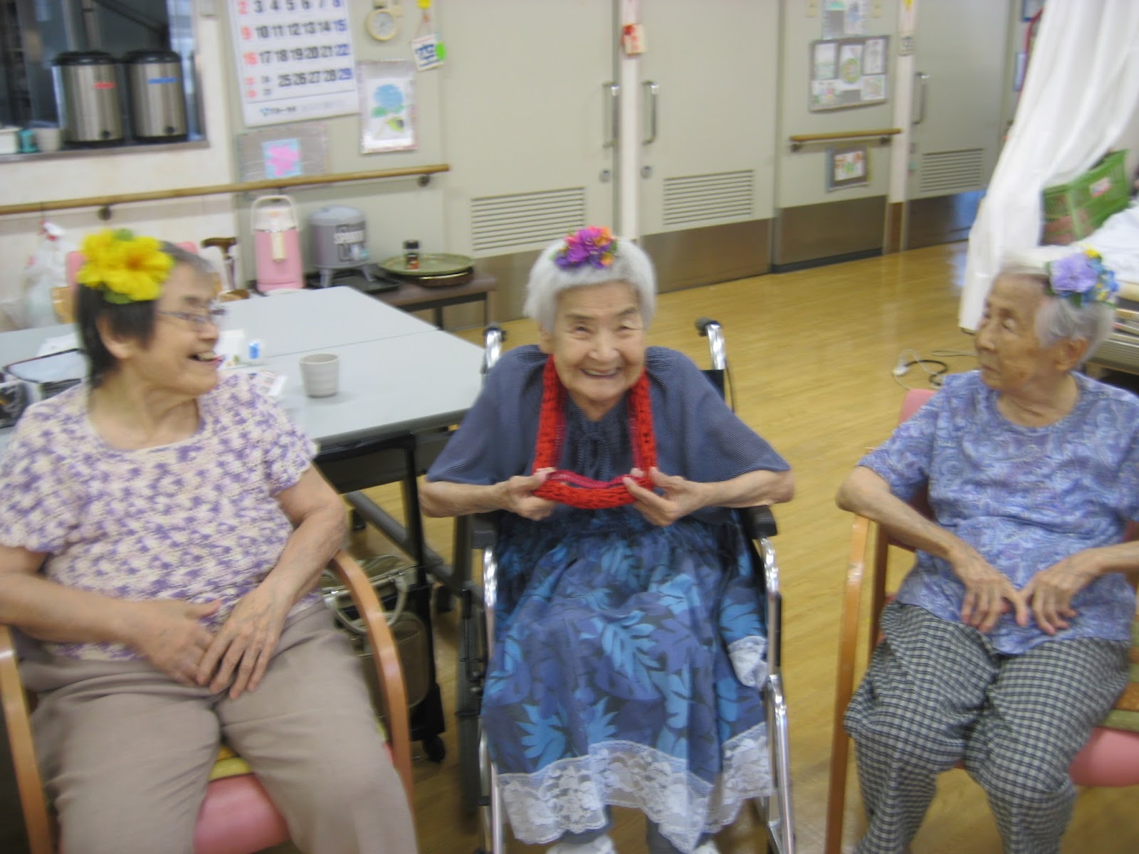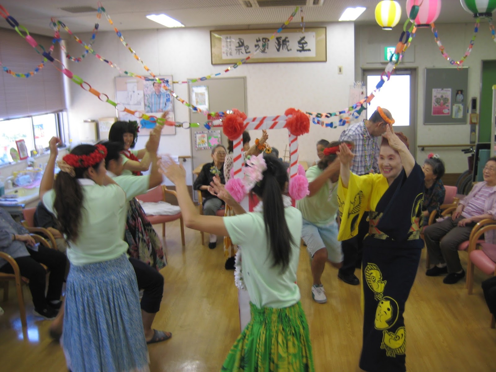 利用者さんはスタッフのギコチないフラダンスに苦笑い・・・