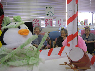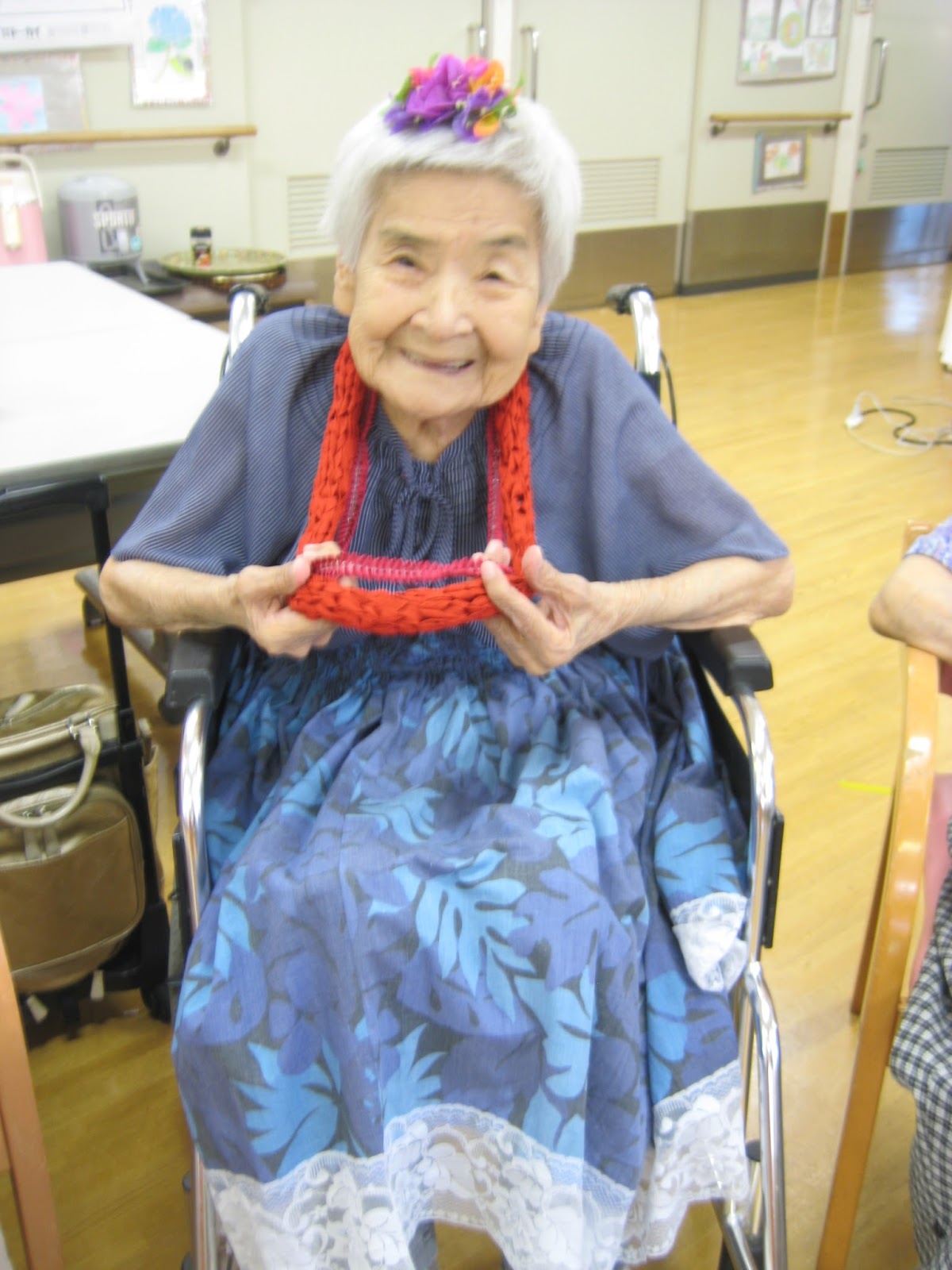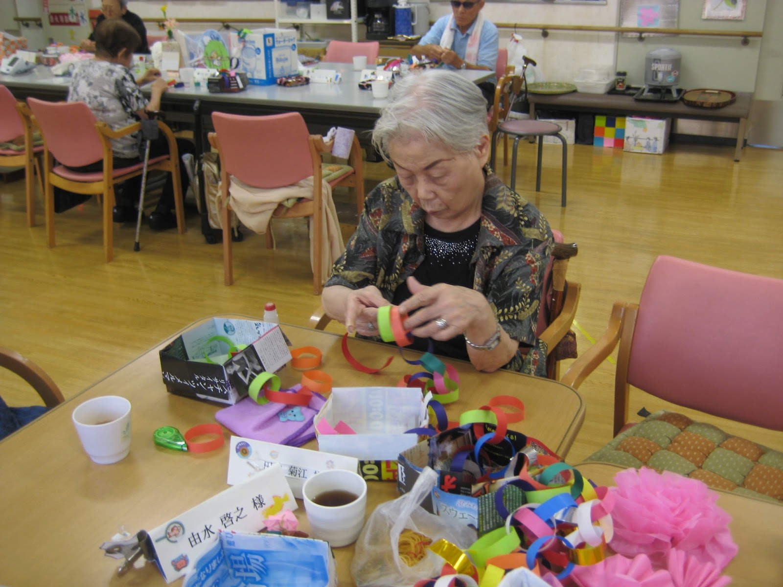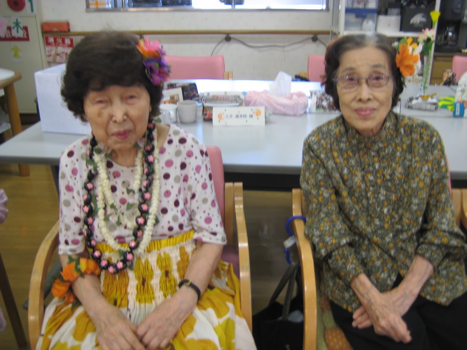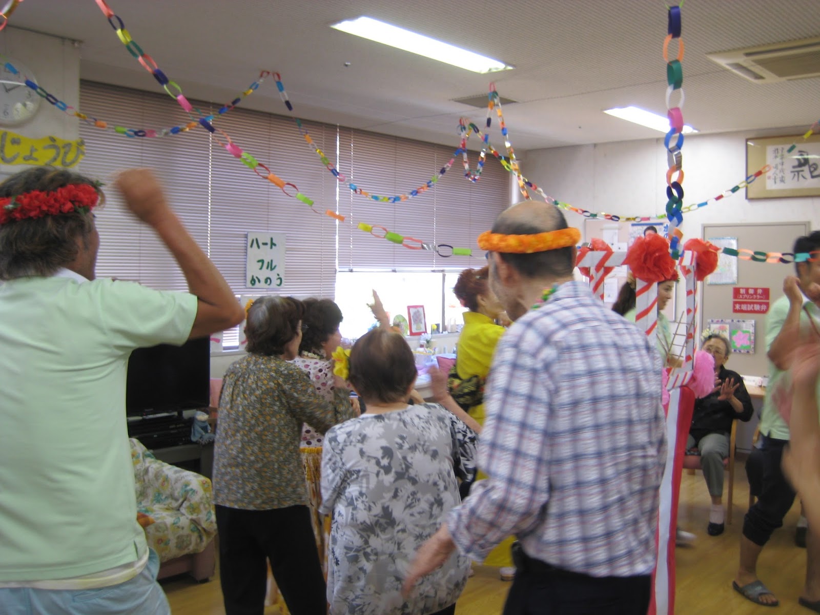 利用者さんはスタッフのギコチないフラダンスに苦笑い・・・