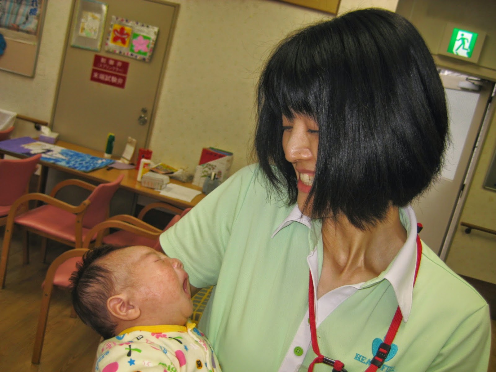 男性利用者さまは、首が座っていないので怖かったようですが、