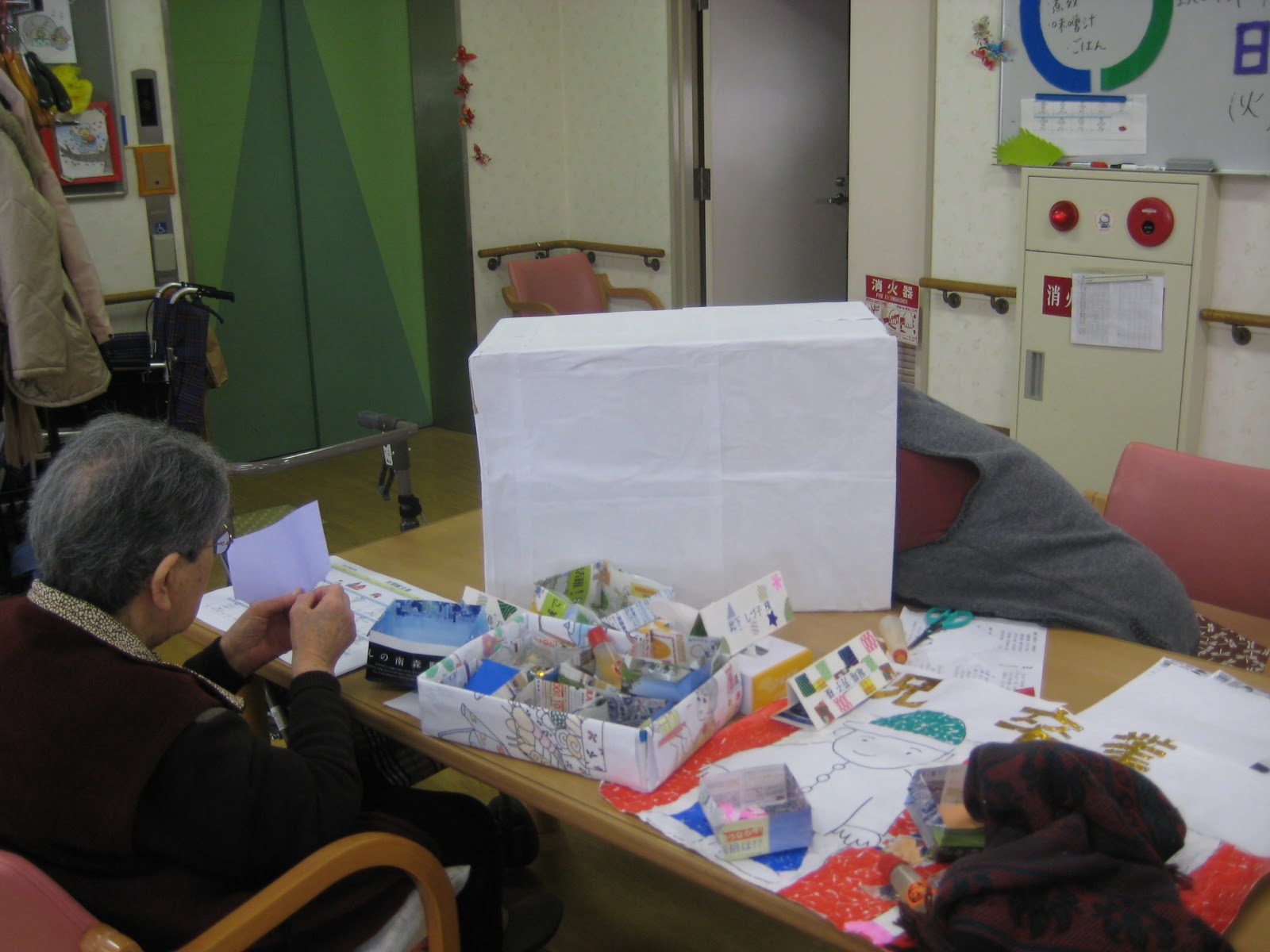 箱の中に紙を貼っていただいています。