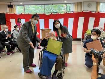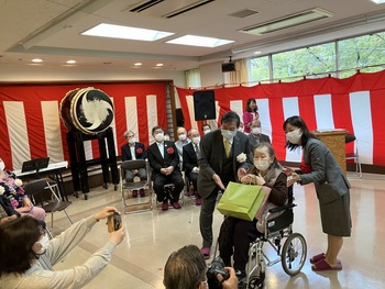 ハートフルこうだから米寿の方2名・百寿の方2名が表彰されました。