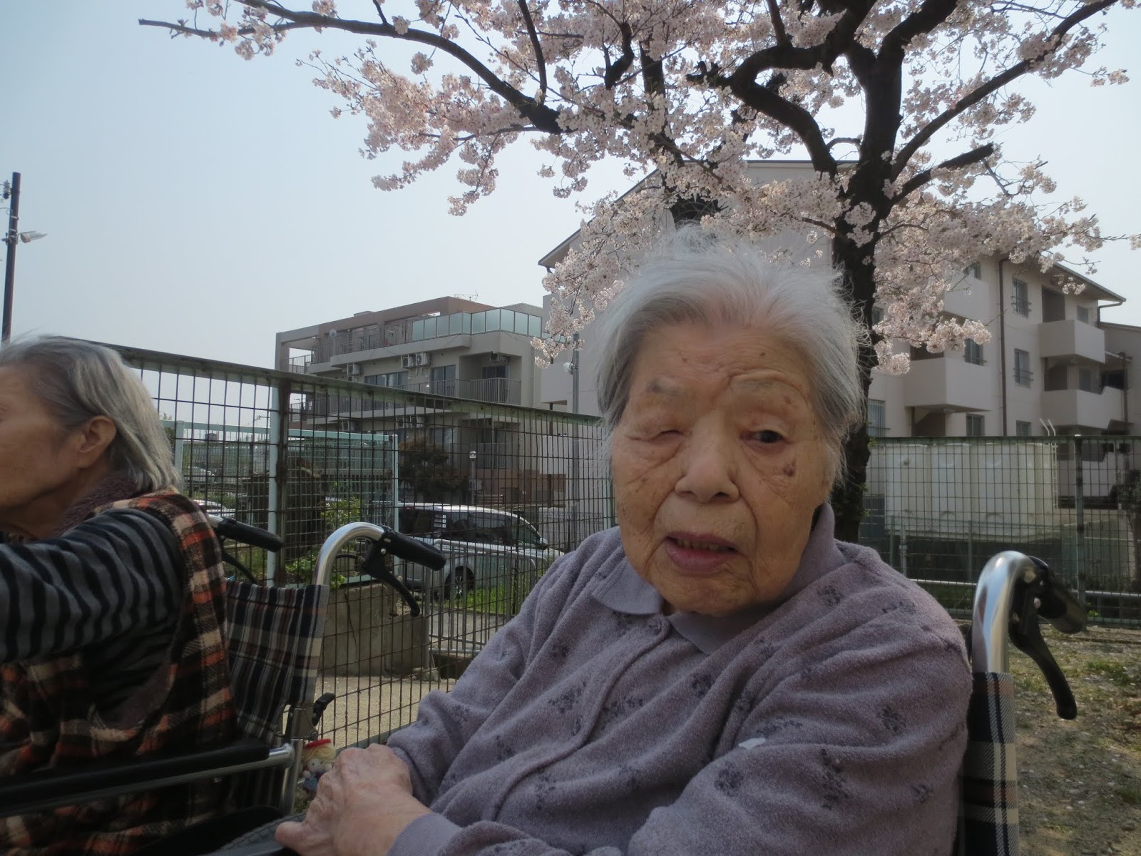 入居者の方と一緒に近所の公園で桜見物に行きました。