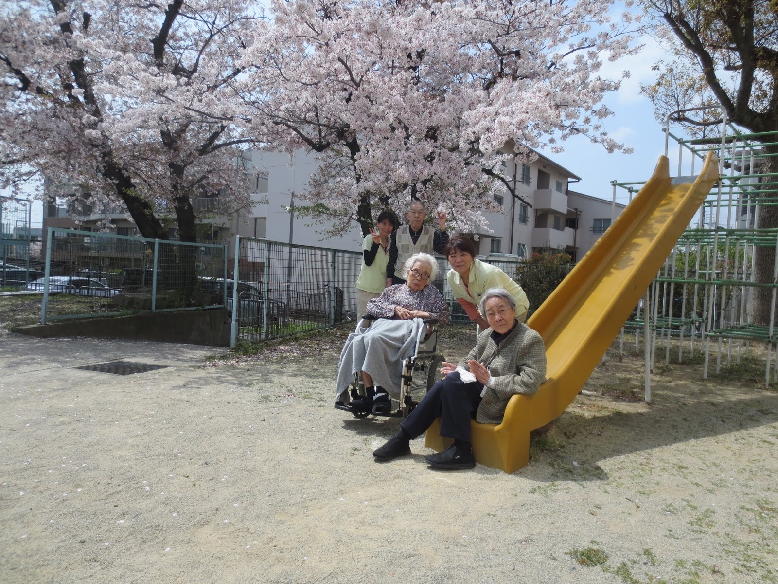 Untitled Post 2018年4月8日 最終更新日時 : 2021年12月17日 ハートフルこうだ 桜の季節となりました!!! 昨年と比べて少し桜の時期が早まりましたが、一気に暖かくなり、近所の公園では桜が満開となり、皆さんでお花見をしました。!(^^)! 近所の公園の桜です。綺麗に咲いていますね!(^^)! いいね~桜の下でくつろいでいるのかな? 桜見物よりも、滑り台で遊んでいる職員がいます。滑り台壊れてないかな~ ついでに記念撮影~!(^^)! ぽかぽか陽気で久しぶりの外出でした。また、外出する機会が増えればいいな~と思いました。⑩