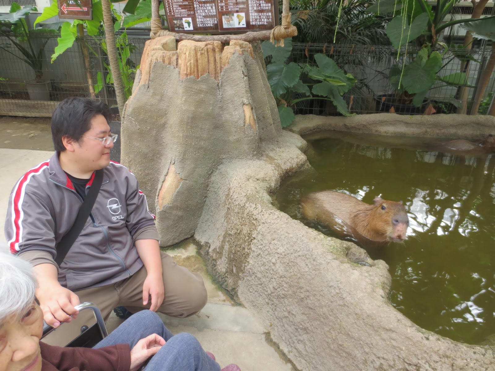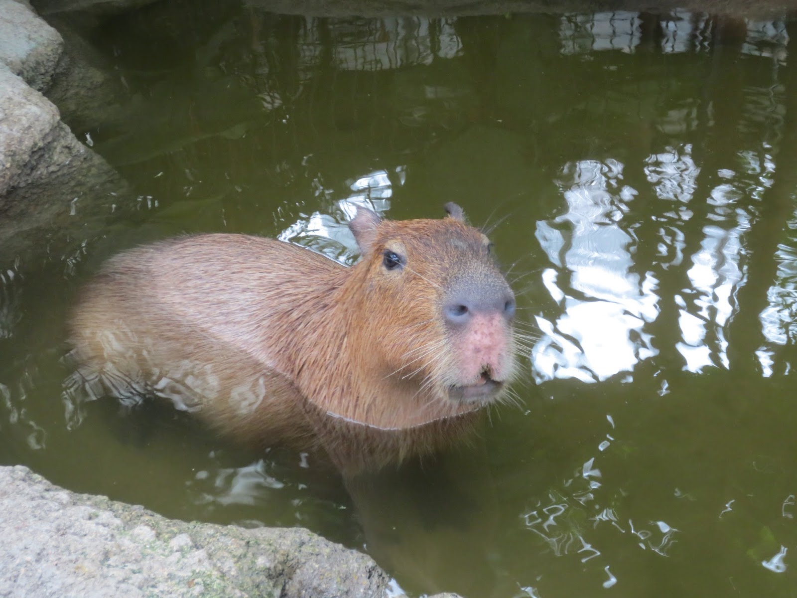 カピパラが温泉につかってました!(^^)!気持ちよさそ~ですが…ちょっとこの温泉はご遠慮させて頂きます(-"-)