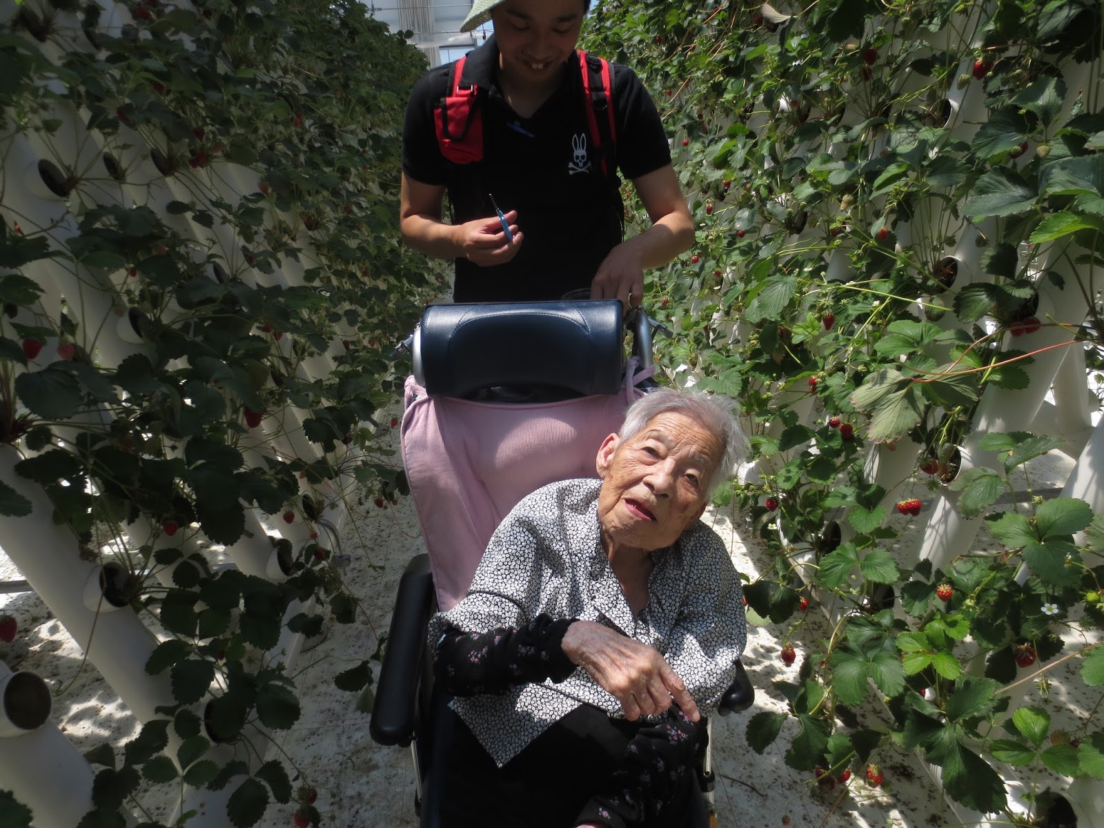 5月18日(木曜日)、3階ユニットの入居者の方々と一緒に猪名川町のイチゴ狩りに行ってきました。