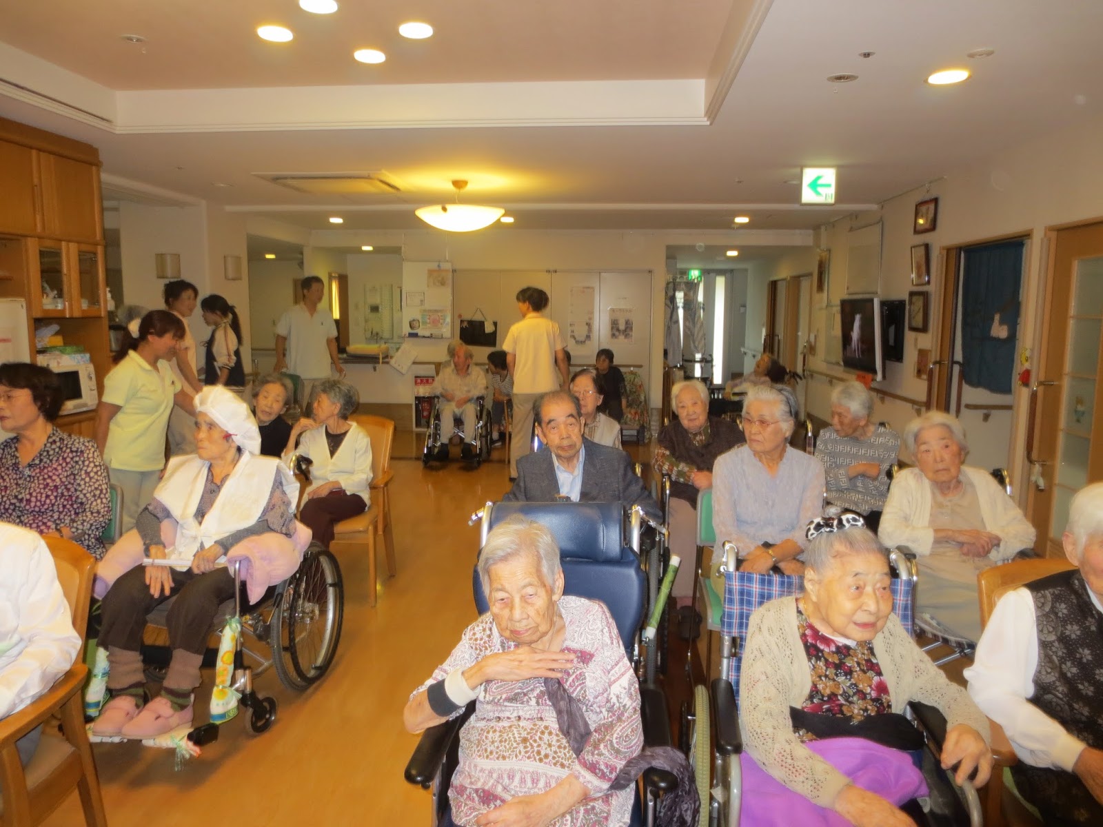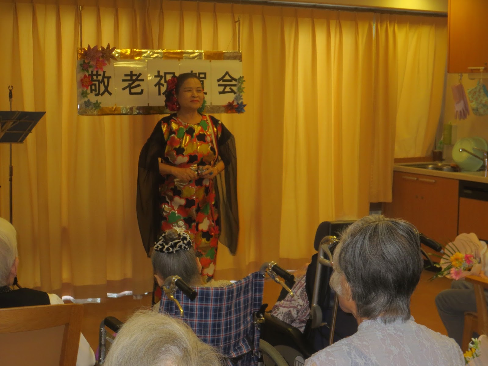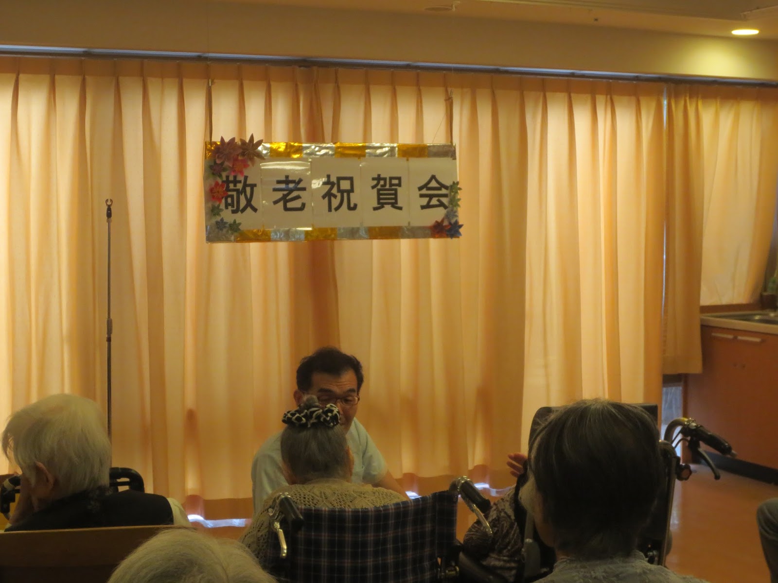 このように敬老祝賀会を楽しく過ごせたのではないかと思います。これからも元気で長生きして頂き、職員やご家族と一緒に楽しい思い出を作っていきたいと思います。