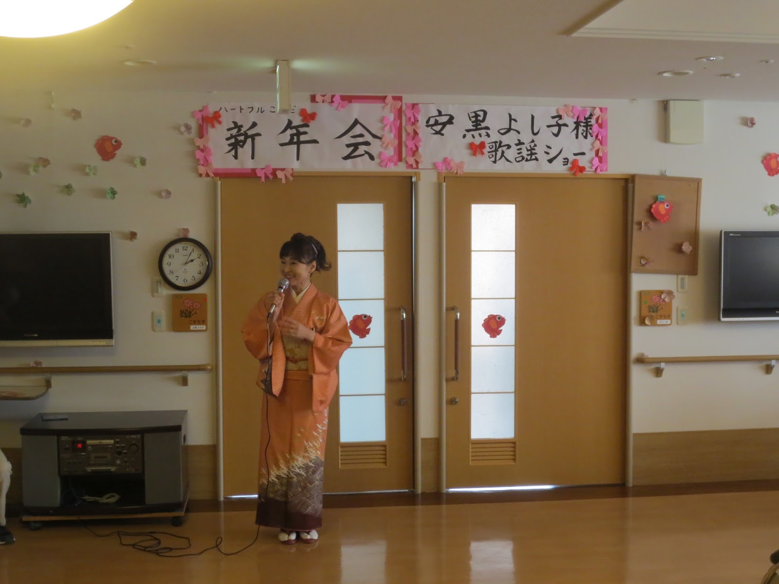 早速、安黒様の歌謡ショーが始まりました。綺麗なお着物で皆さんも見惚れていました(^'^)