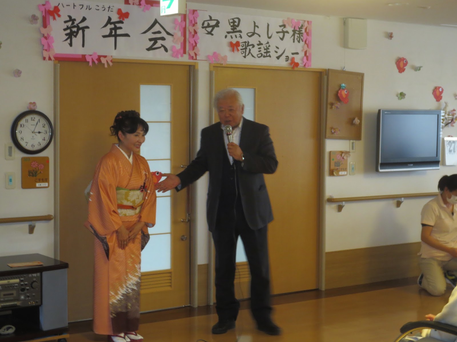 平成28年新たな年を迎え、今年も楽しく過ごしていきたいと思い、安黒様の歌謡ショーを皆様に楽しんで頂きました。その様子をご覧ください