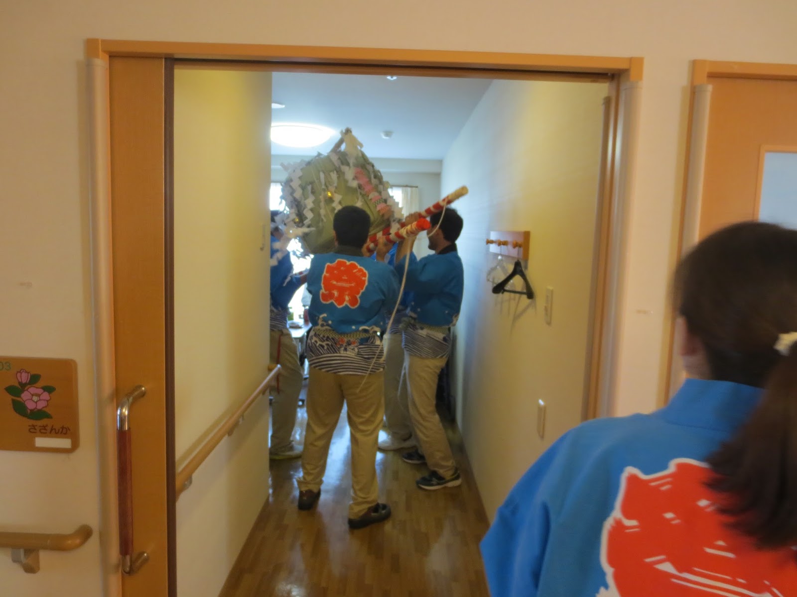 寝たきりの高齢者の居室にもご挨拶!!大丈夫か「男神輿」(ー_ー)!!