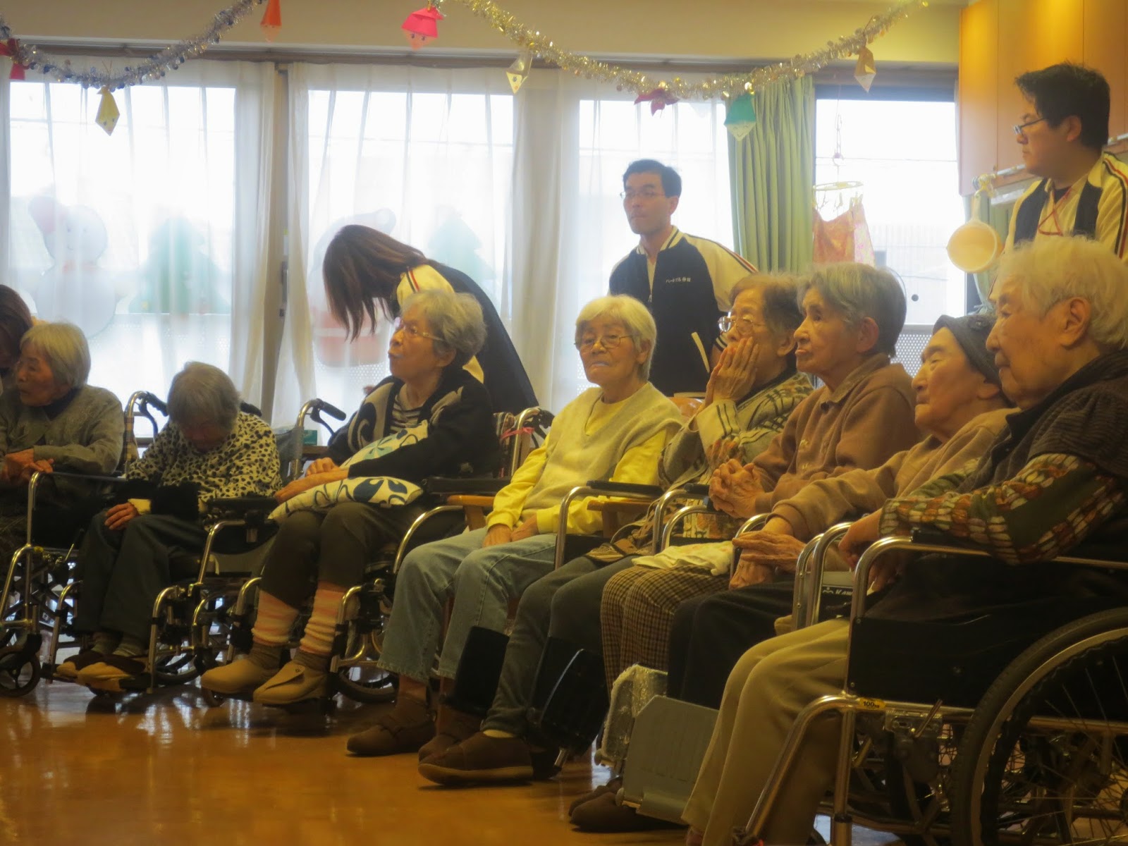 続いて、演奏が終わった後に、サンタ・トナカイ????が登場して入居者の皆さんにプレゼントを手渡しています。(自腹で買ったわけではないですよ<(`^´)>)