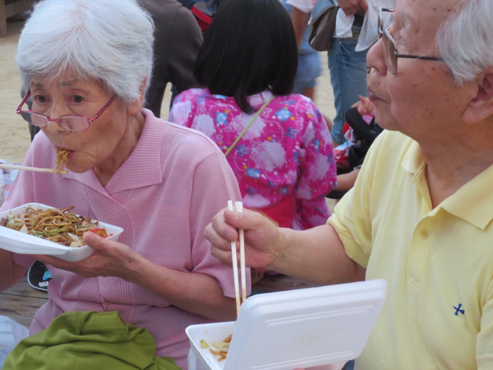 初めは、普段住み慣れた地域から離れるということで、少し緊張した表情でしたが、お祭りの雰囲気や屋台の焼きそば・たこ焼きなどを食べることによって、笑顔になられ大変楽しまれていました。帰られた後もみなさん満足された表情で、それぞれのお部屋に帰り、ゆっくり休まれていました。