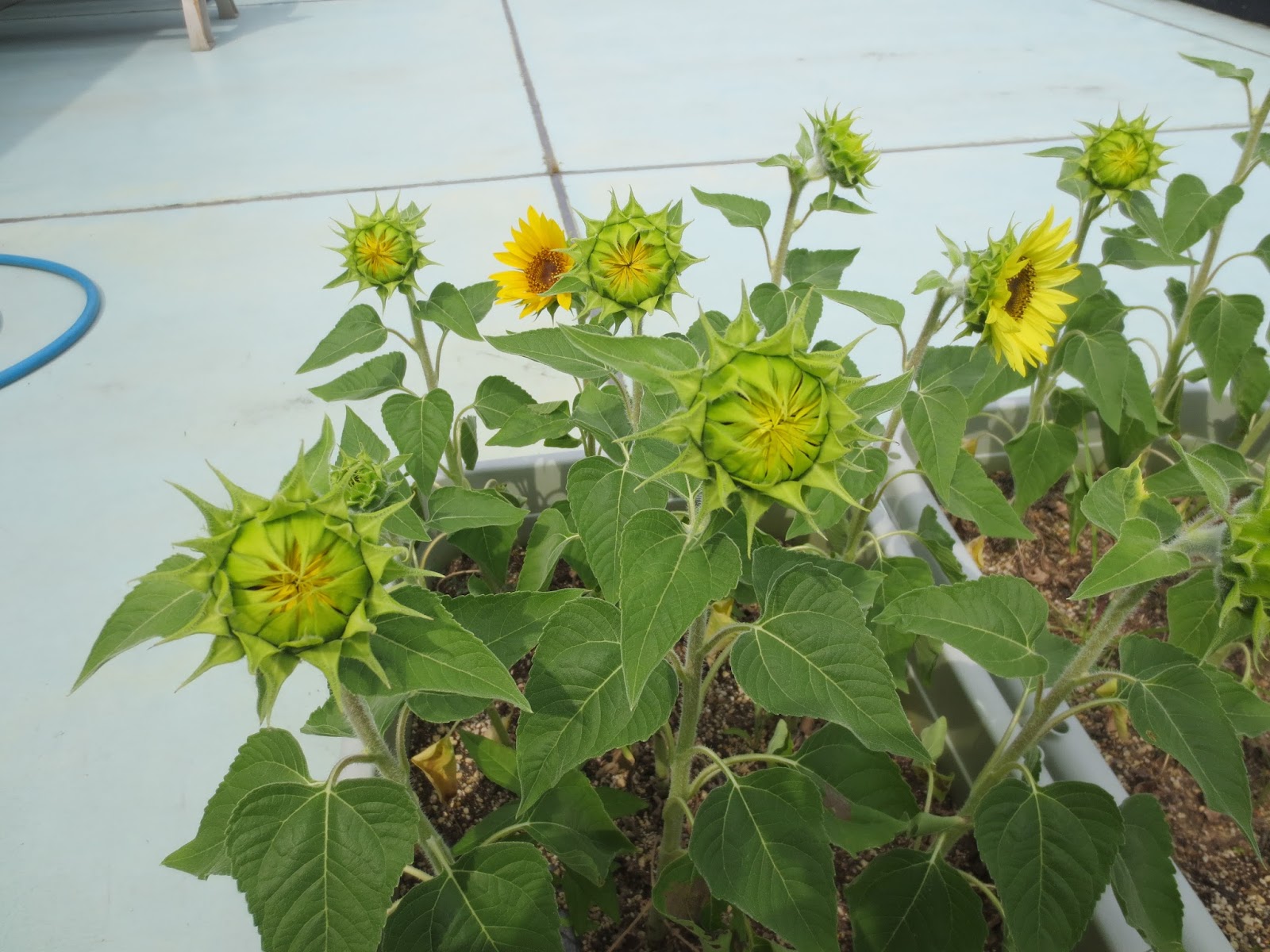 この約3か月の間に様々な出来事がありましたが、まずは、入居者の方に季節を感じて頂きたいと思い、上の写真ですが、ミニひまわりの種を5月下旬ごろにまきました。6月上旬ごろには、大きく成長し葉っぱも青々としています。種からまくとわが子のように手塩をかけて育てました。(#^.^#)