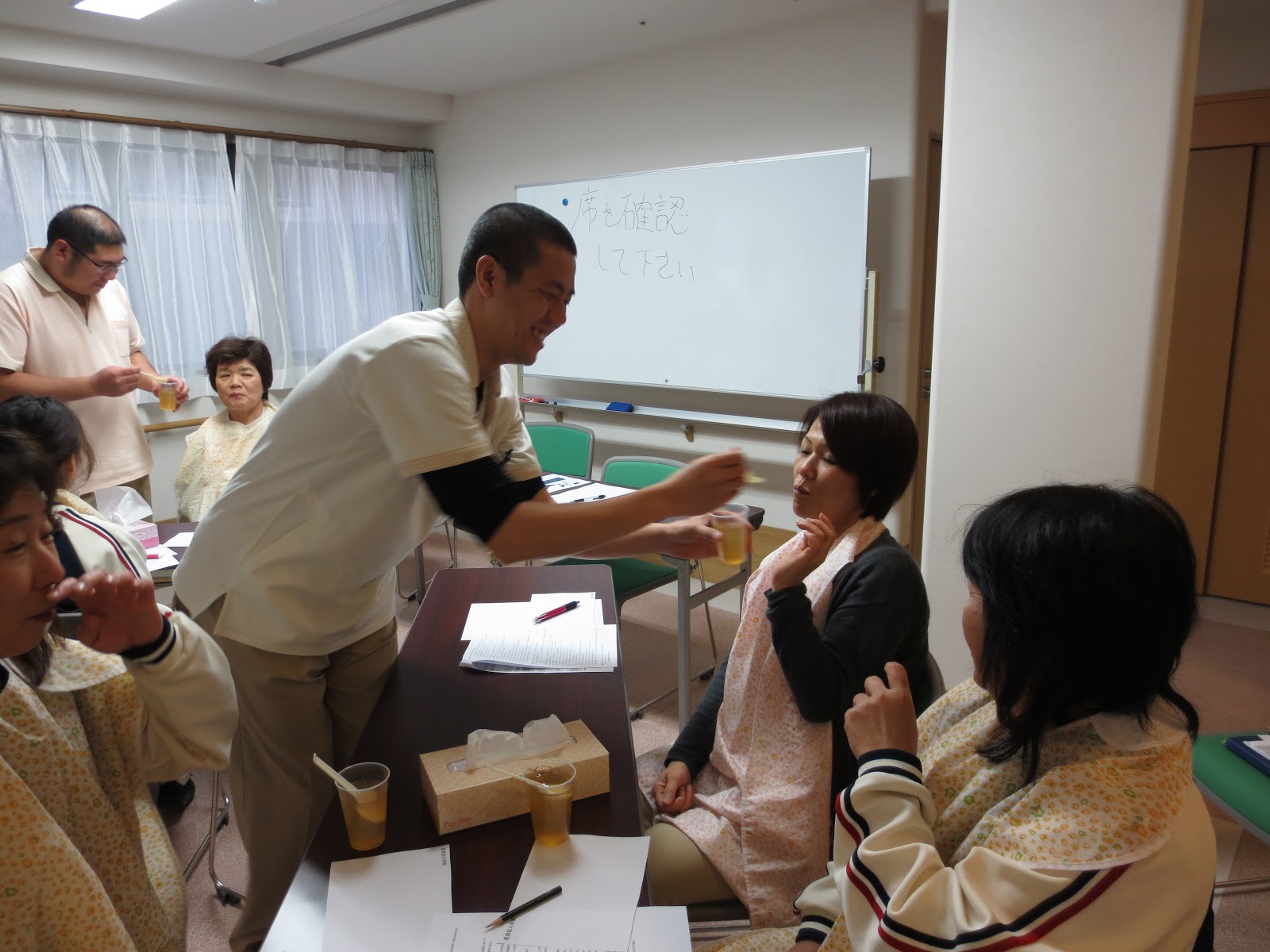 身体拘束予防委員会による勉強会 2013年1月30日 最終更新日時 : 2021年12月17日 ハートフルこうだ1月29日 身体拘束予防委員会主催による勉強会を行ないました。 今回は「無言の食事介助」「職員のペースでの介助」を職員が体験し、無言の食事介助をされてどのような気持ちになるのかを体験しました。 今回は管理者にも体験してもらいました。